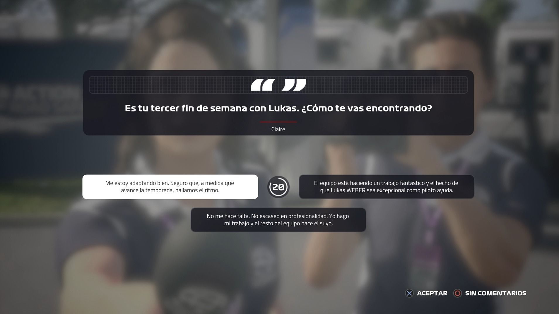 El componente narrativo continúa cuando damos el salto a la F1, añadiéndose nuevas relaciones y conflictos. También han ganado importancia las entrevistas con la prensa, unas interacciones que definen nuestro carácter fuera de la pista y la relación con la escudería. El último elemento clave es la firma de los contratos, un aspecto que ha mejorado y en el que encontramos mayor variedad de situaciones.
