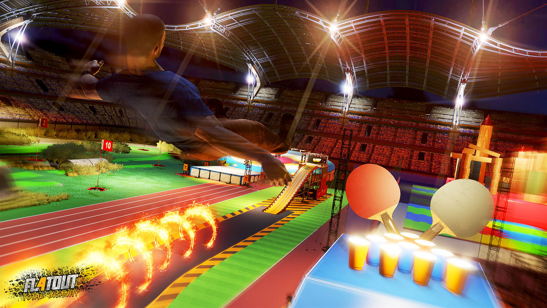 Esta variedad jugable la podemos degustar en el modo FlatOut, 42 pruebas con puntuaciones que tenemos que ir desbloqueando progresivamente, donde podemos conseguir la copa de bronce, plata y oro, y que nos proponen todo tipo de locuras. Desde carreras que parecen más propias de un Mario Kart, donde podemos utilizar poderes especiales para fastidiar a nuestros rivales (bombas, minas, una bola de demolición), lo que es muy divertido, hasta pruebas acrobáticas, en la que nuestro piloto sale despedido por la luna delantera y tenemos que meterlo dentro de unos vasos, tirar unos bolos, jugar al golf o al billar, o derribar un castillo de juguete.
