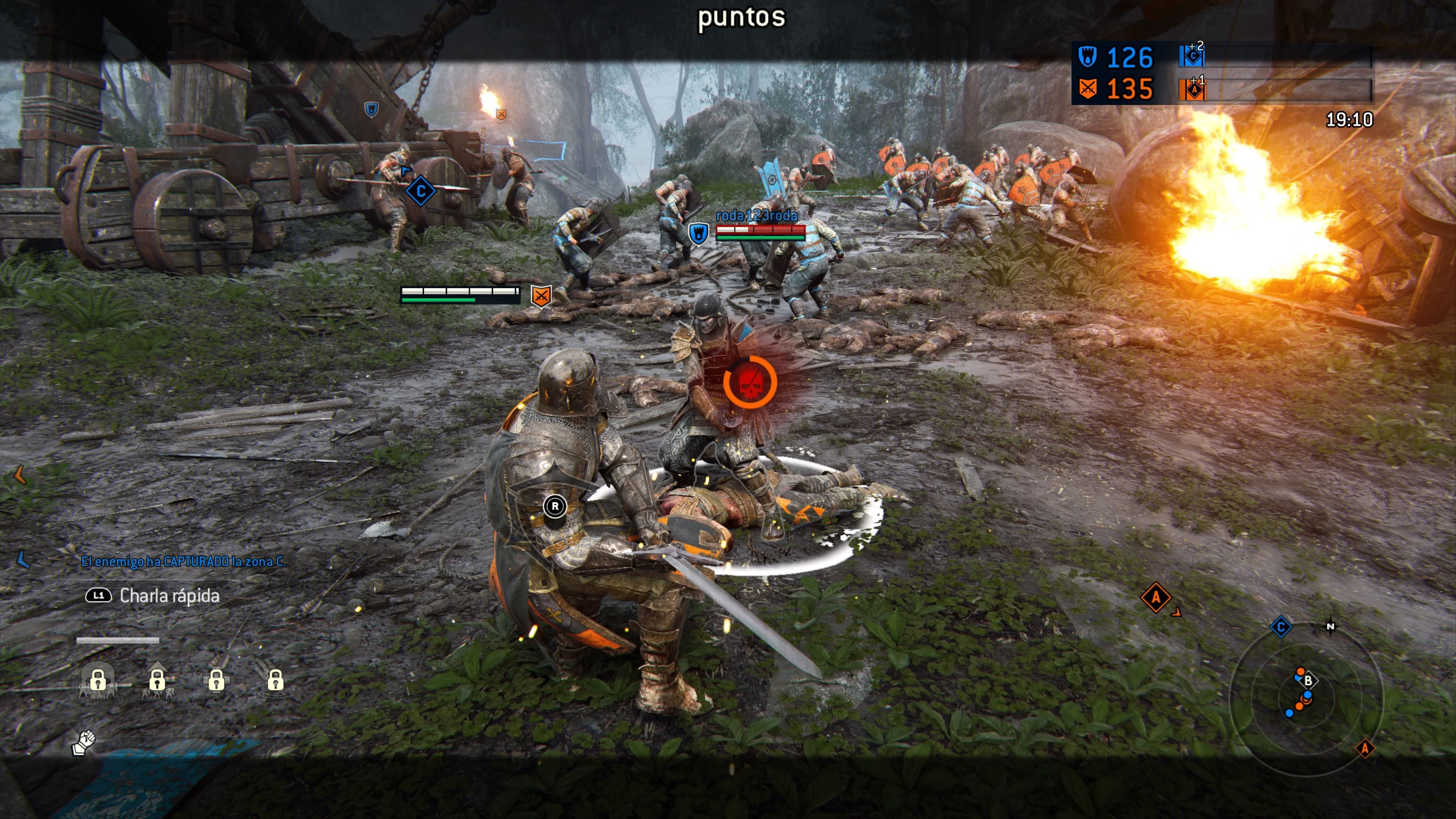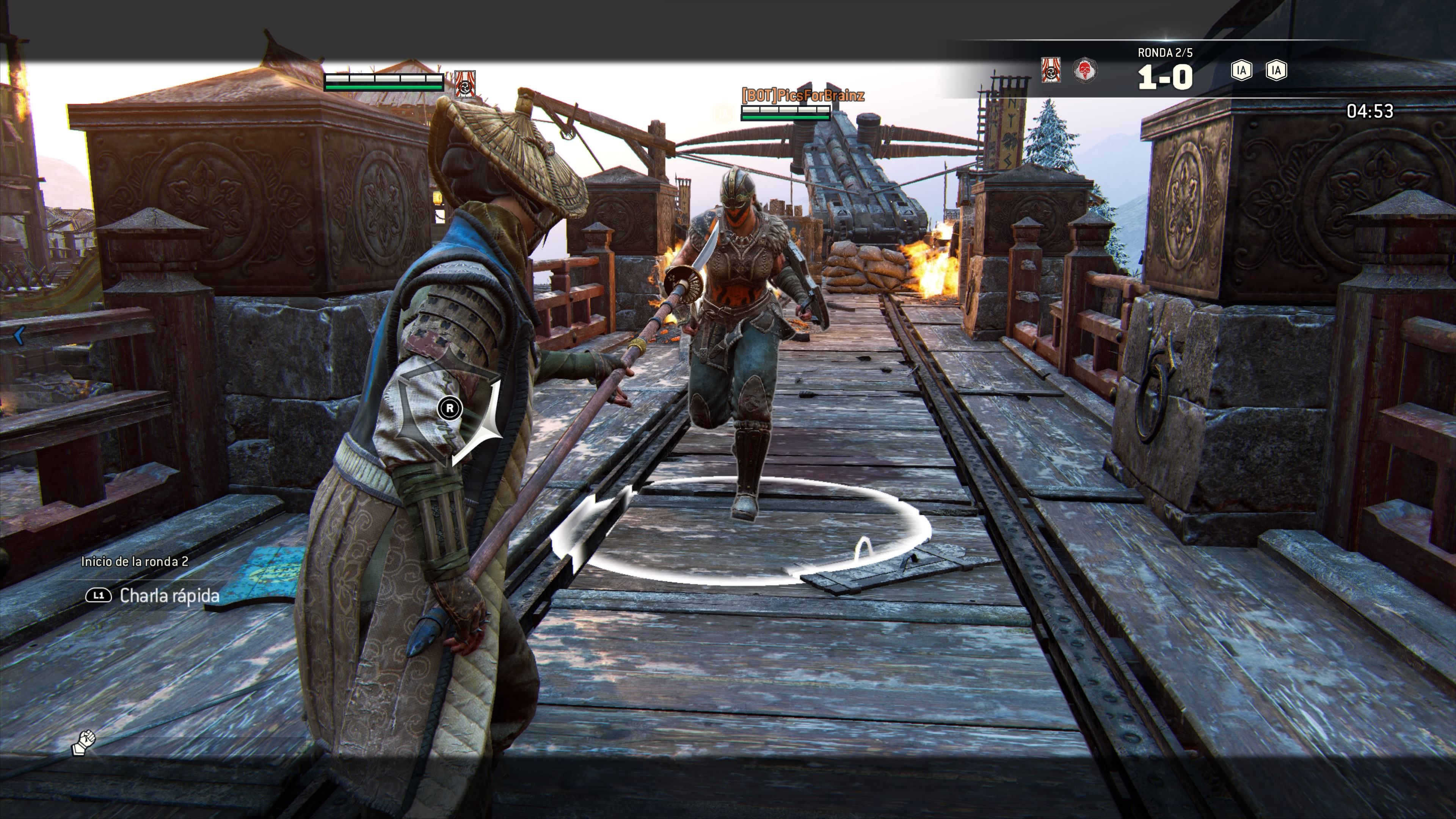 Hablando de controles, aquí tenemos uno de los mayores aspectos diferenciadores de For Honor respecto al resto de juegos del mercado y uno de sus puntos fuertes. Esto se debe a que existen tres direcciones distintas por las que nos podemos cubrir y atacar (derecha, izquierda y arriba), algo que en combinación con dos tipos de ataques básicos (flojo y fuerte), la posibilidad de realizar agarres para romper defensa y las técnicas especiales de cada personaje acaba resultando en unos duelos de ingenio y habilidad tan tensos como satisfactorios.