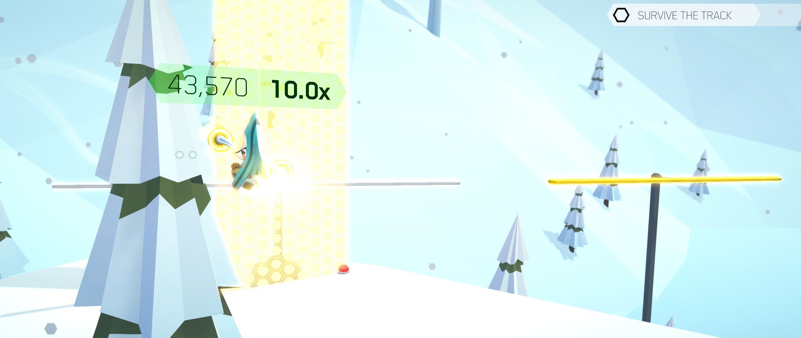 Como veis en las imágenes, los niveles están compuestos de una serie de raíles de colores, así como otros blancos. Deslizarnos por los raíles del mismo color que nuestras ruedas nos permitirá conseguir puntos y mantener el combo para multiplicar nuestra puntuación. Tocar uno de otro color supondrá la muerte instantánea, mientras que tocar uno blanco suele ser un terreno neutral: no moriremos pero perderemos el combo.