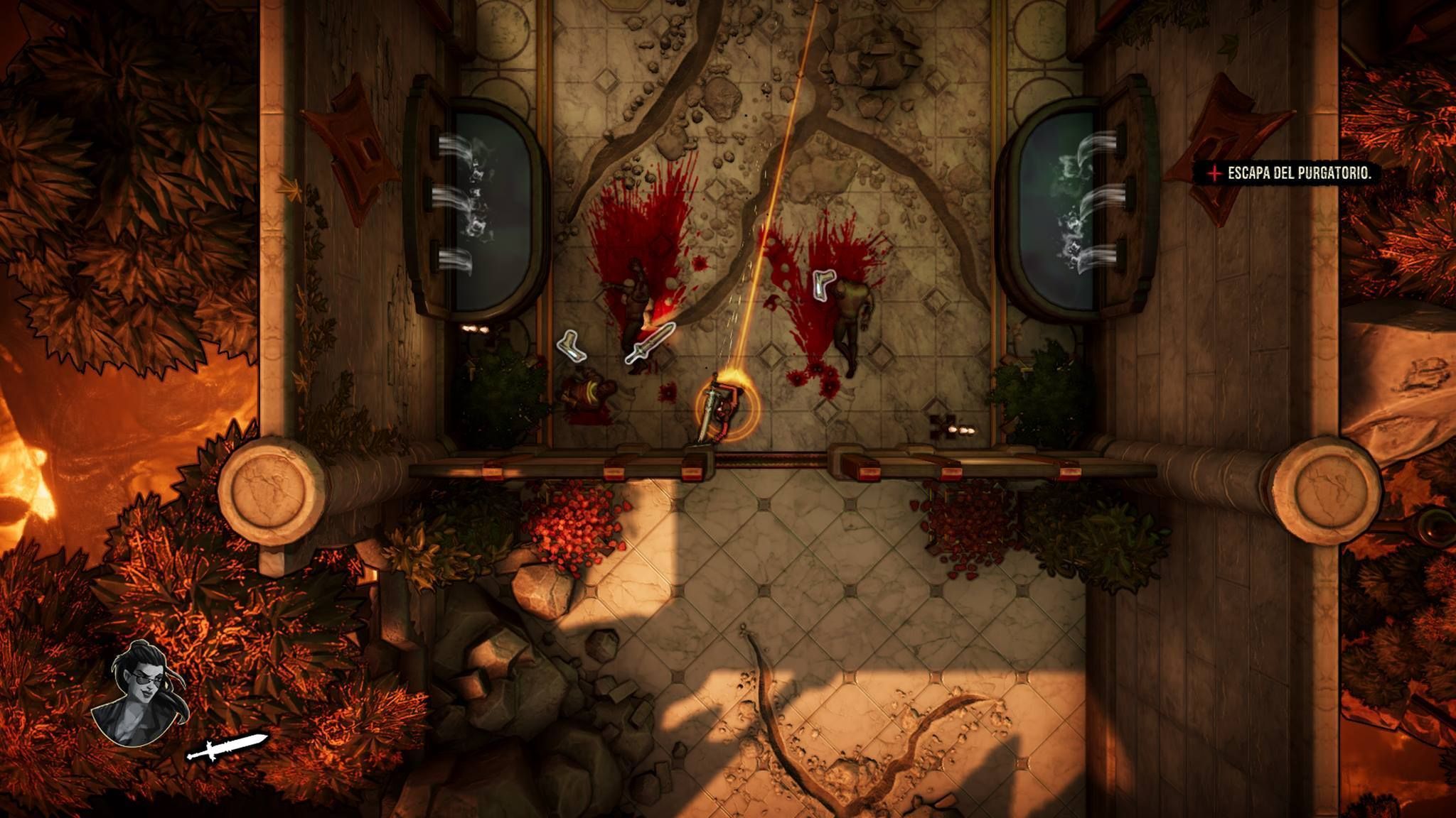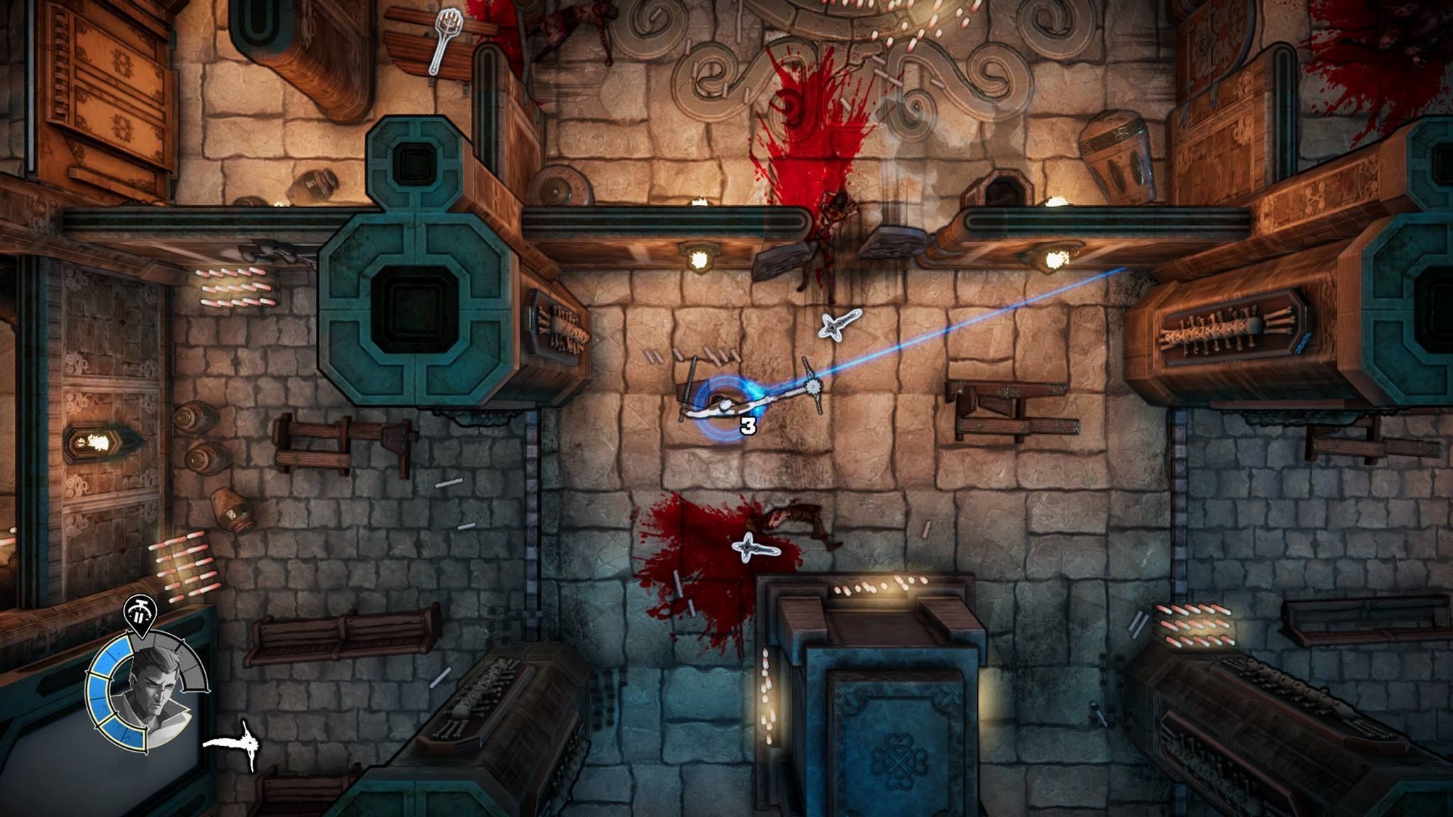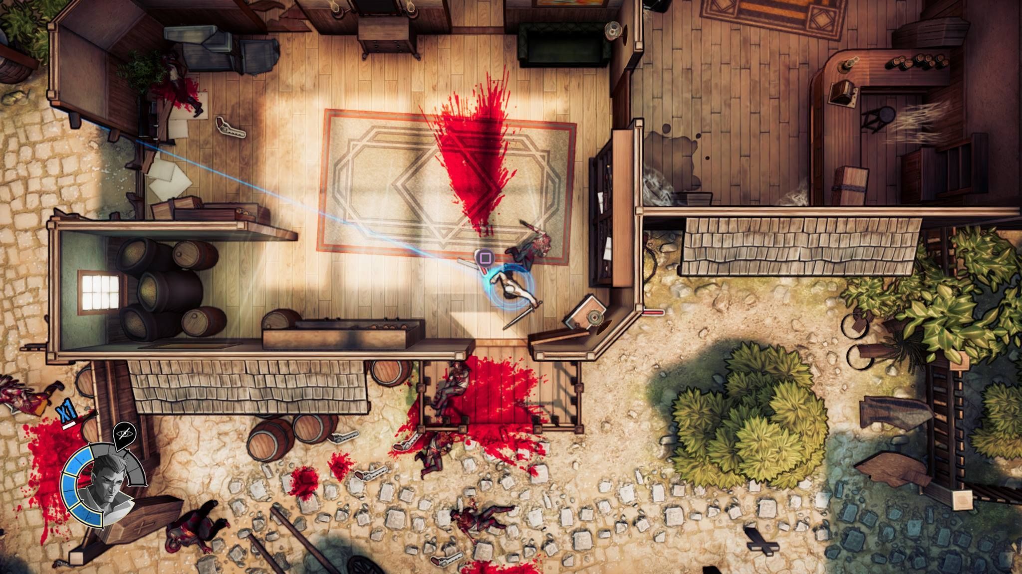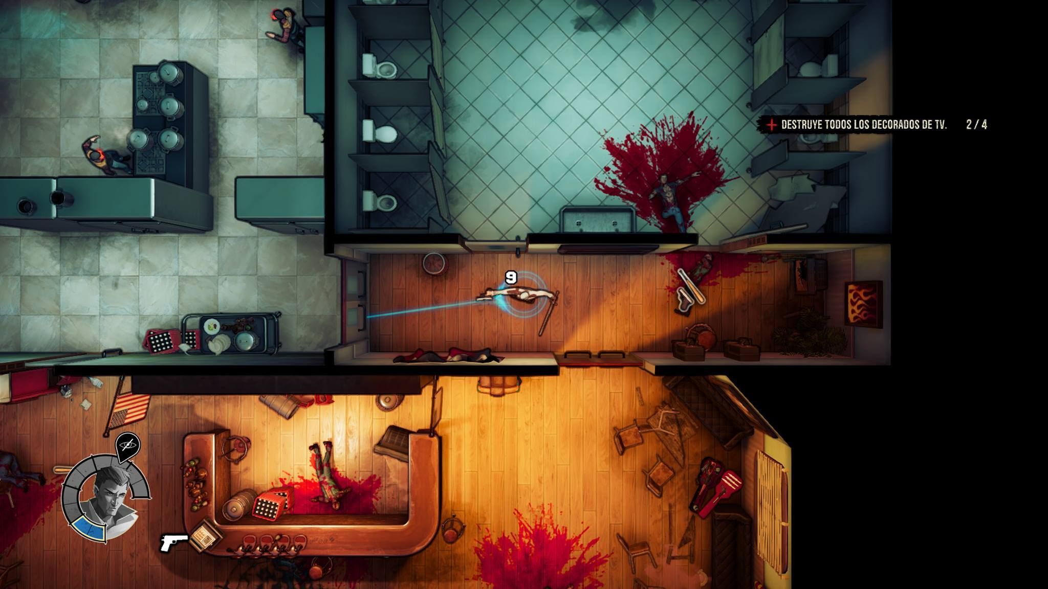 Si lo comparamos con Hotline Miami es porque el tipo de juego se asemeja mucho a aquel título y no a otros. Se aleja de los twin stick shooter arcade como pudieran ser las producciones de Housemarque, donde hay una lluvia de balas, puedes recibir algo de daño y los enemigos son "esponjas": aquí un tiro es letal en la mayoría de ocasiones para protagonistas y enemigos, así que tenemos un poco de sigilo no obligatorio pero sí recomendable –además se premia-.