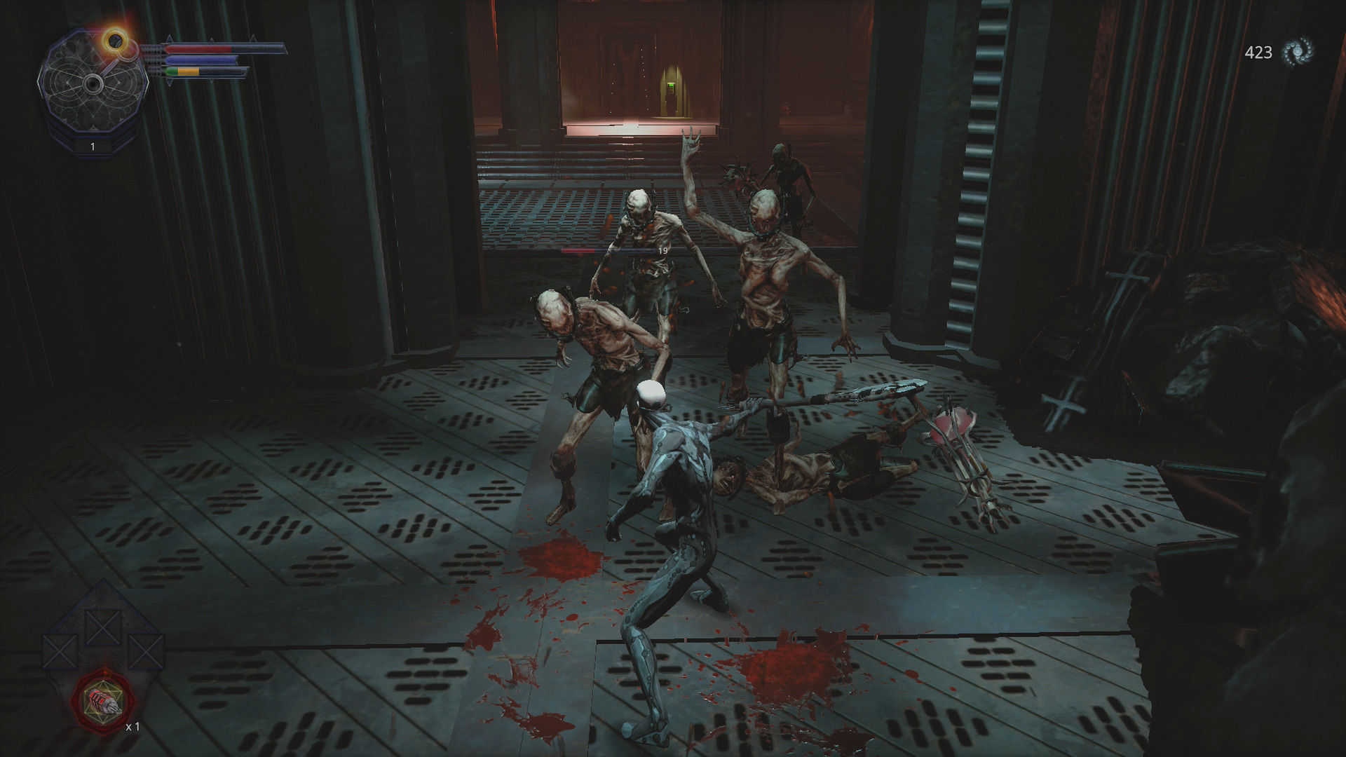 Hellpoint es un proyecto financiado en Kickstarter que no esconde en ningún momento su referente. Es básicamente lo que imaginas: un Dark Souls con unos valores de producción pequeños, donde la gran diferencia es su ambientación, o al menos en parte. Y es que Hellpoint transcurre en la estación espacial Irid Novo, una estructura que a ratos nos puede recordar a escenarios de Alien: Isolation, Dead Space, Doom y tantos otros productos de ciencia ficción con toque de terror, pero que a su vez no logra apartar su mirada de la fantasía medieval de FromSoftware. ¿Enemigos con aspecto de caballeros en armadura, equipados con escudo y espada? ¿Criaturas tipo zombi con hachas o mazas? ¿Brujería? Sí, de vez en cuando habrá rayos que sustituyen flechas, pero casi hablamos de lo que podría ser un MOD de la fórmula Souls. Igualmente la historia intenta contarse con retazos de información en terminales dispersos, pero Hellpoint nunca logra atrapar al jugador como lo hace un juego de Miyazaki; ni el trasfondo es tan interesante ni trae villanos o personajes con carisma –y esto incluye el protagonista-.