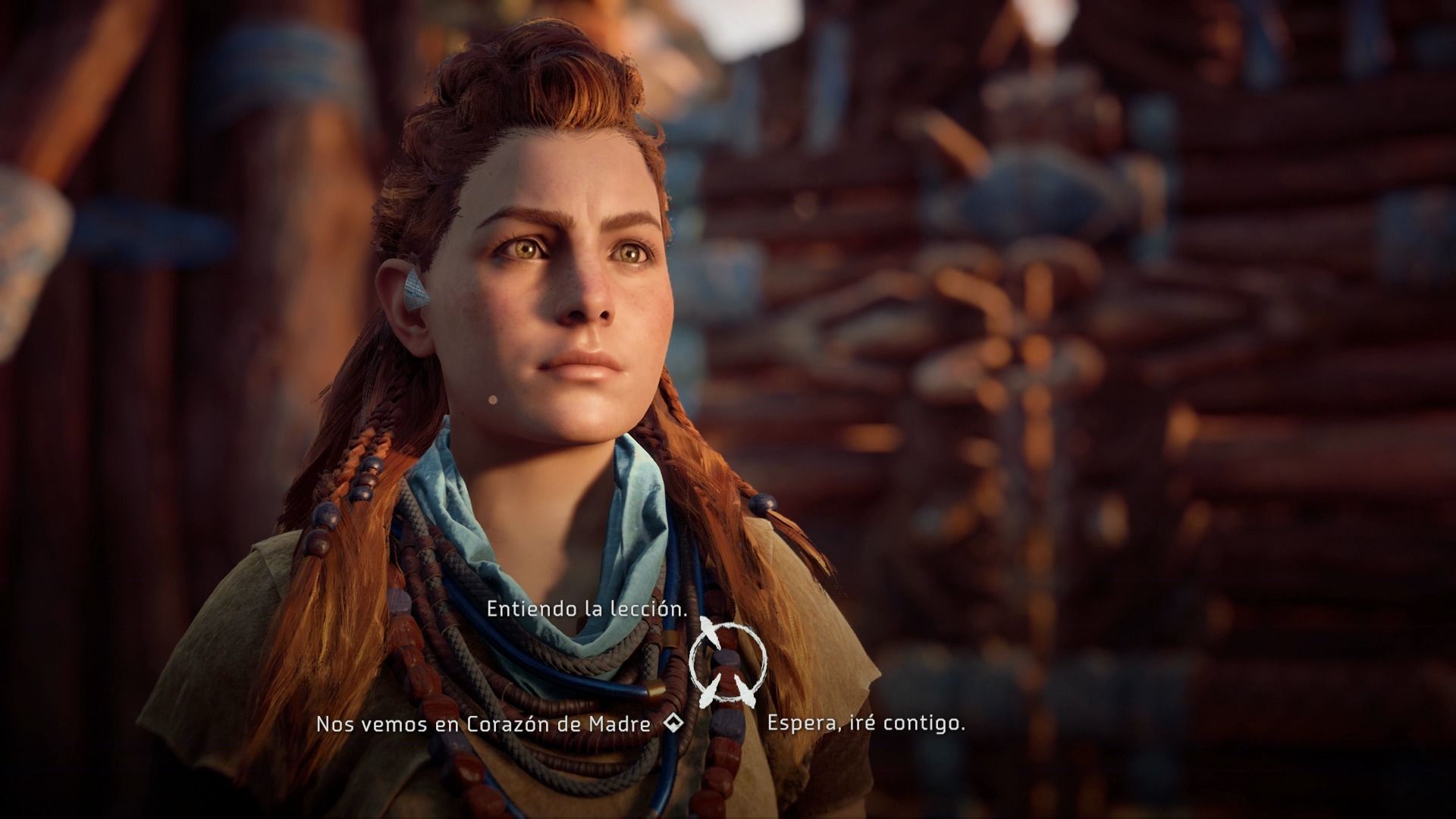 Lo primero que sorprende de Horizon: Zero Dawn es su narrativa, muy elaborada, y que va a guiar nuestros pasos durante toda la aventura. Podríamos hablar de que el juego tiene dos historias, desconectadas entre sí. Por un lado, los conflictos bélicos y políticos de las tribus humanas que habitan el mundo, algo que se ha escrito con mucho detalle, creando un lore muy elaborado. A nosotros no nos ha interesado demasiado esta parte de la narrativa, y nos ha parecido la típica historia que puedes encontrar en cualquier otro RPG, aunque hay que reconocer que está trabajada.