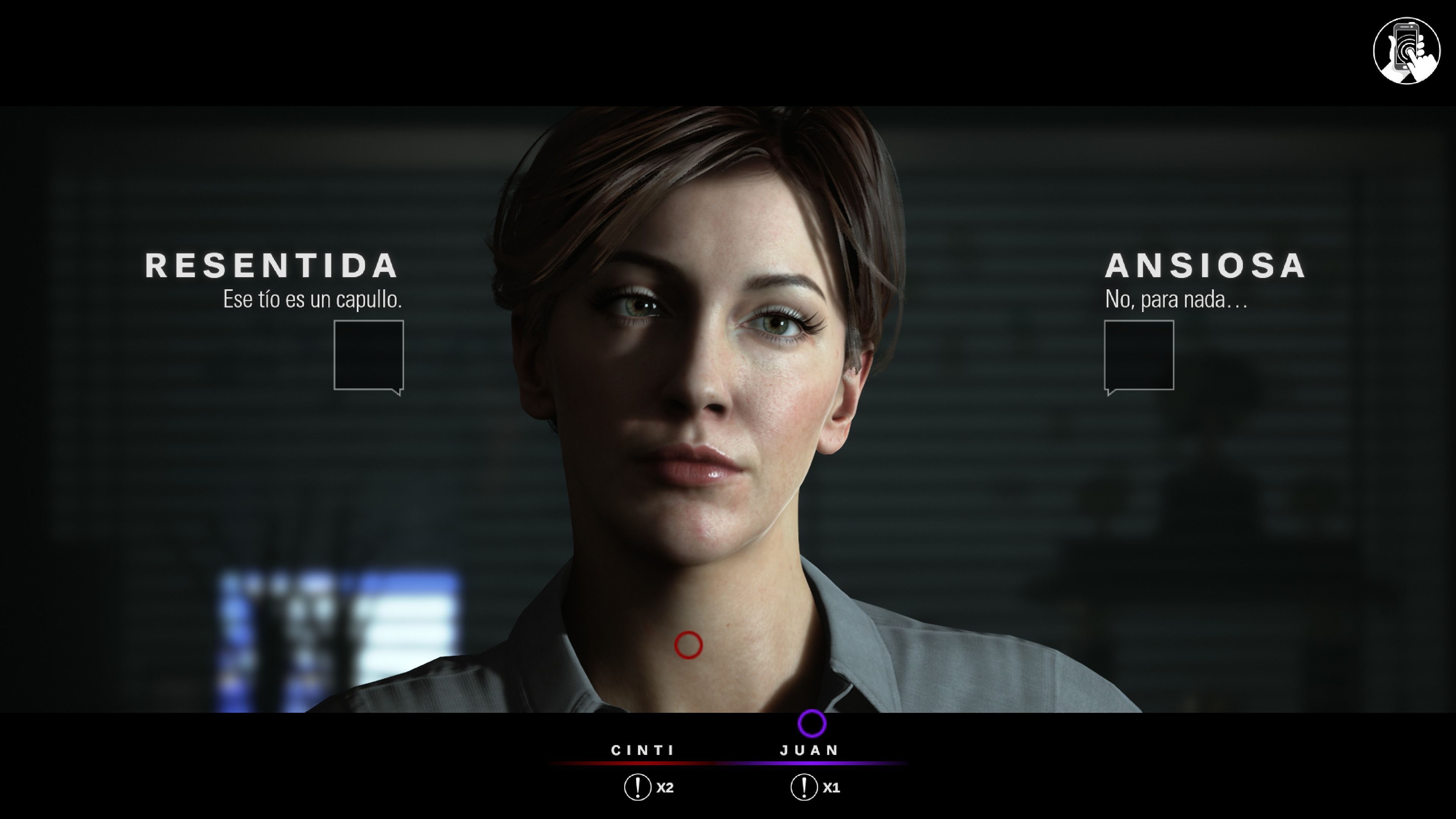 Las decisiones se limitan a elegir entre dos respuestas, o no responder nada. También tenemos momentos en los que es necesario apuntar a una zona concreta si queremos, por ejemplo, dispararle a un personaje, o buscar pistas en un escenario determinado.