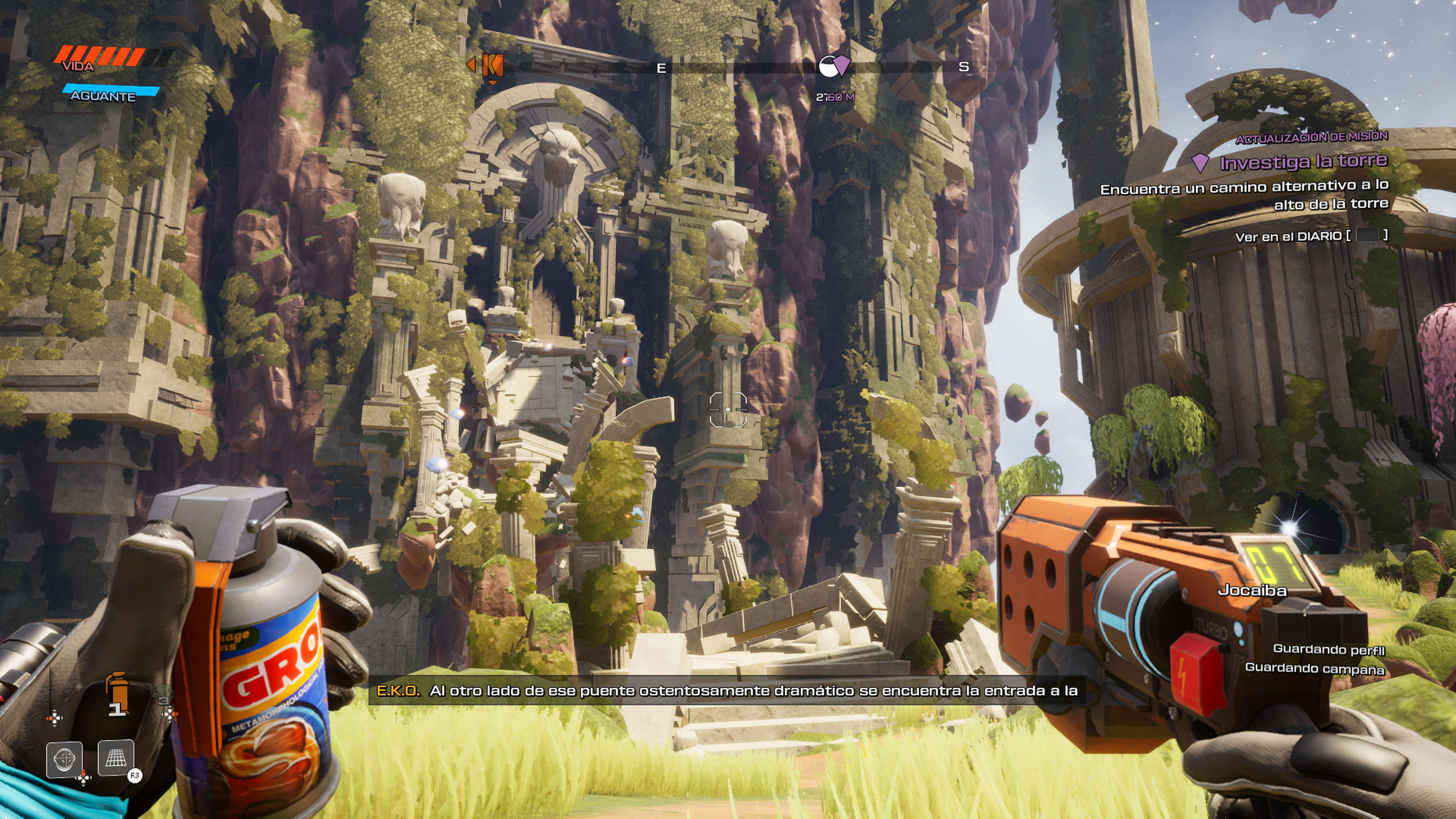 Hay un pequeño componente de recolección de recursos, aunque muy leve. Para fabricar mejoras -algunas necesarias para avanzar, otras prescindibles- necesitamos diferentes compuestos químicos que sueltan las criaturas o que podemos encontrar por el escenario. De igual modo, encontraremos mejoras y secretos, por lo que buscar en cada rincón tiene su recompensa. Creemos que hay que reconocerle el mérito de hacer que todo vaya encajando de manera orgánica, haciendo que el desarrollo siempre tenga sentido. Algo a destacar es que siempre nos deja jugar como queremos, que rara vez impone y que siempre informa. Si te falta algo para avanzar, no va a dejar que te vuelvas loco intentando averiguar qué falla; te notifica claramente y te da la libertad para que sigas haciendo lo que quieras.