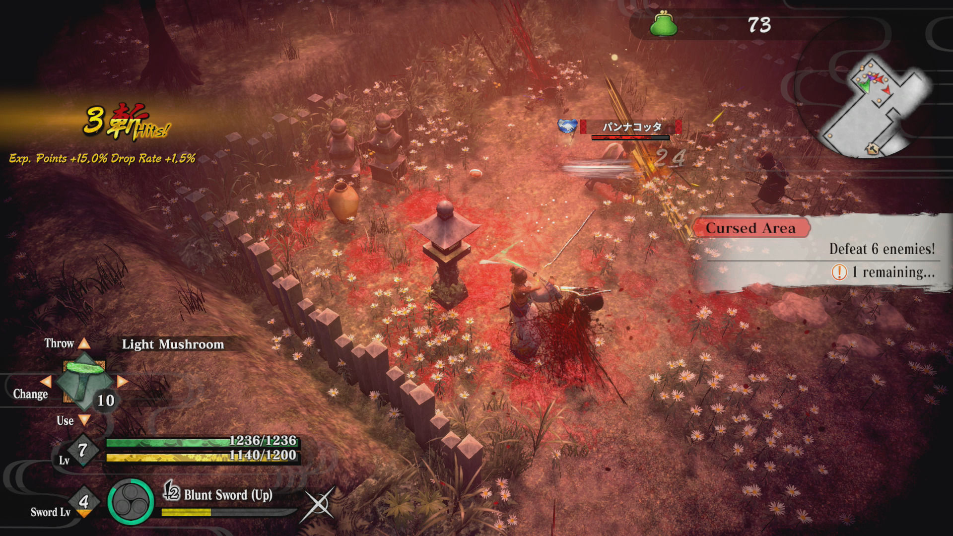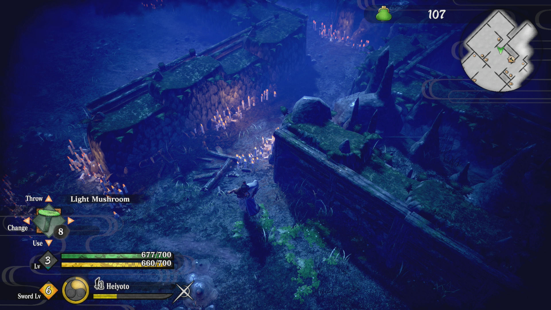 No obstante, al trasladar esto a la jugabilidad sufre algunos problemas que restan puntos a la experiencia. La gestión por menús es bastante incómoda, y la vamos a utilizar mucho a la hora de mejorar armas, buscar comestibles o equipar objetos. También hay muchos conceptos que no quedan bastante claros o son explicados muy de pasada, y la dificultad sufre altibajos: el camino hasta el jefe quizás sea un paseo, pero el enemigo final te costará sudor y sangre. Y lo peor, en la práctica lo que mejores resultadas suele dar es dejar a un lado todas esas estrategias avanzadas e ir atacando con el ataque rápido, esquivando de vez en cuando. Como muchas veces estaremos rodeados de enemigos, la defensa suele ser poco efectiva con enemigos a nuestras espaldas.
