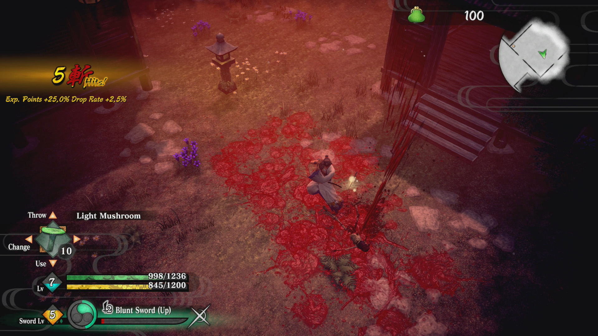 Si bien con las serpientes o lobos la estrategia es bastante tontorrona, y la inteligencia artificial no es para tirar cohetes –de vez en cuando los enemigos no saben sortear obstáculos y quedan corriendo contra un muro-, los rivales humanos/demoníacos dan más juego al combate y también saben defenderse, lo que requiere forzar la bajada de la guardia. Al igual que otros títulos con katanas, se pide un poco de estrategia y una buena defensa, evitar embestidas o desviar golpes. Puedes caminar con la espada desenfundada, aunque el movimiento es más lento que con ella envainada, y existe un sistema triangular –o piedra, papel, tijera- entre defensa, ataques y patadas. Un buen bloqueo o evasión da acceso a lanzar un potente kiwami.