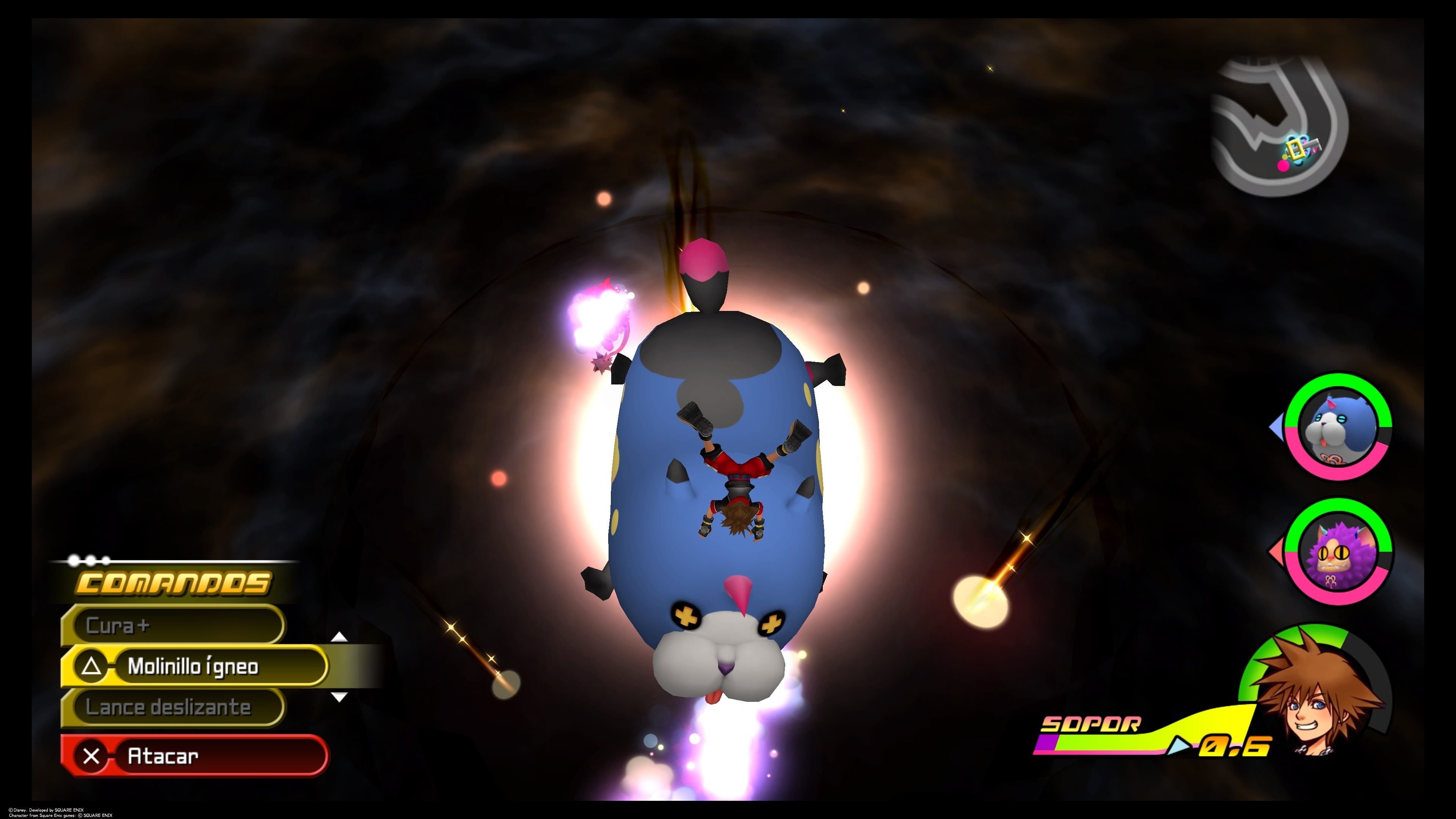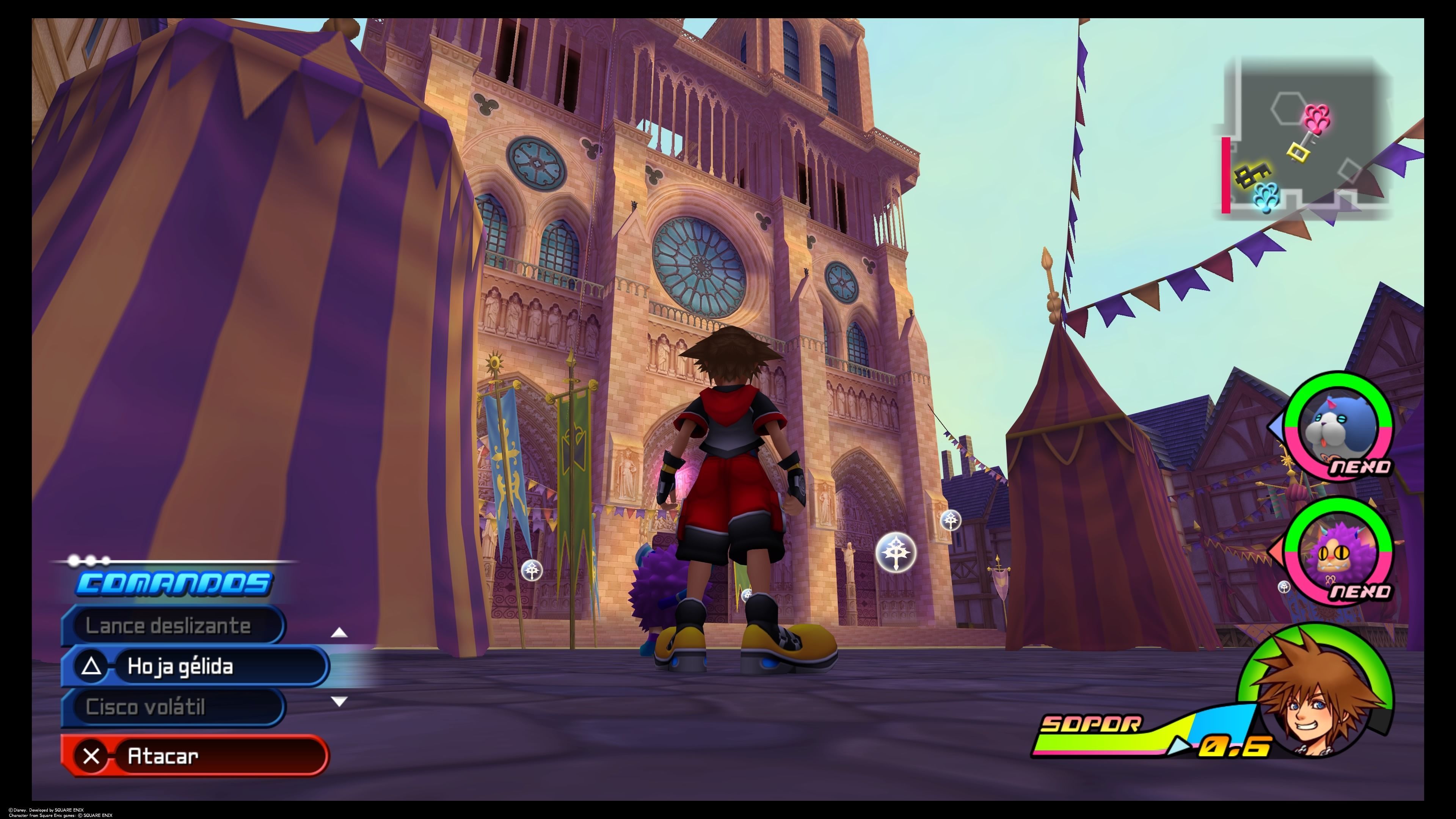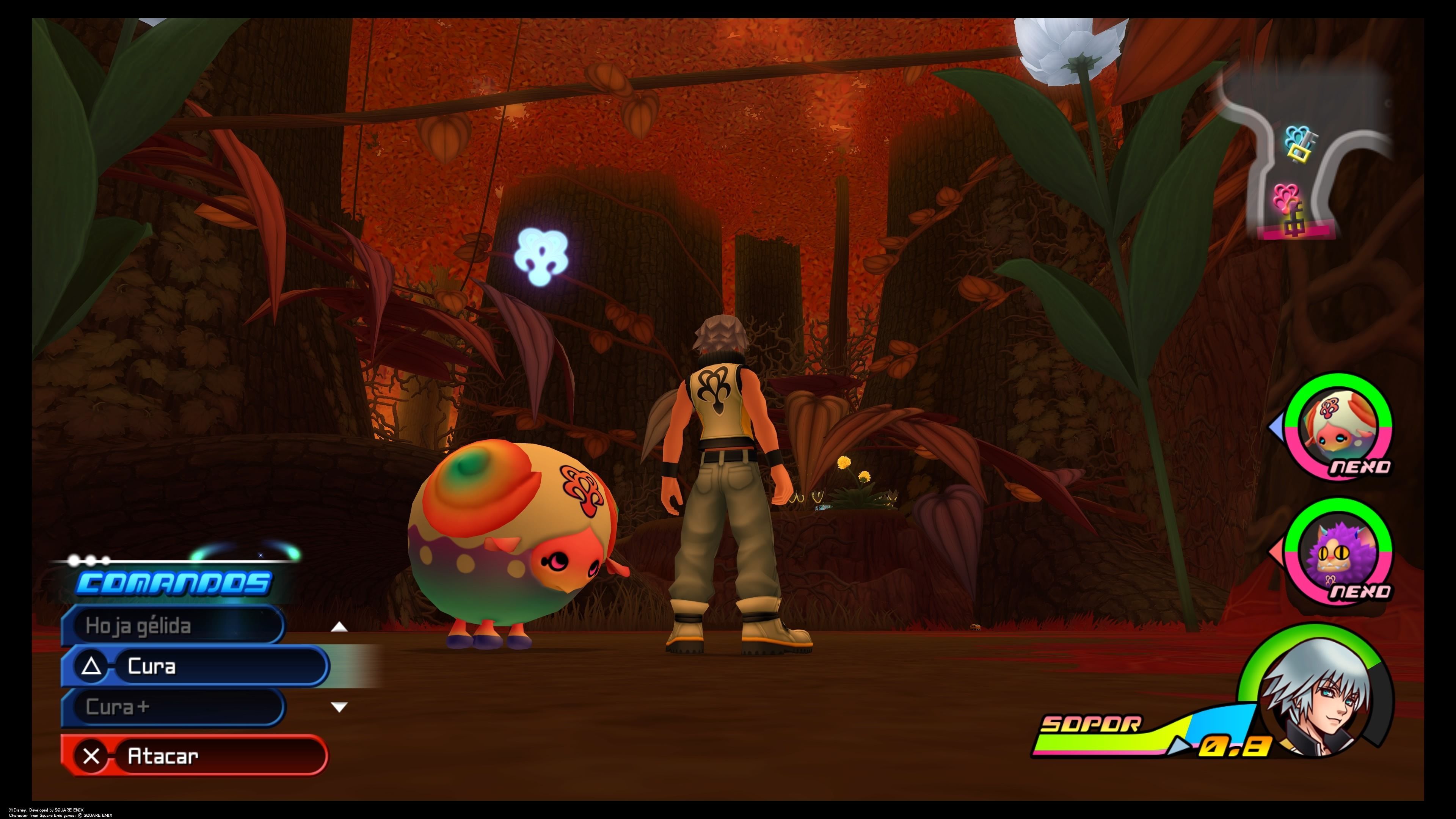 Otro aspecto que no nos ha terminado de convencer es el sistema de "Sopor". Como ya hemos dicho, en este juego controlaremos tanto a Sora como a Riku, aunque a diferencia de Birth By Sleep, sus campañas no están separadas y están estrechamente vinculadas, por lo que tendremos que completarlas en paralelo. De este modo, siempre tendremos en pantalla un medidor que nos indicará el tiempo que le queda a nuestro personaje activo antes de dormirse, lo que dará paso al otro.