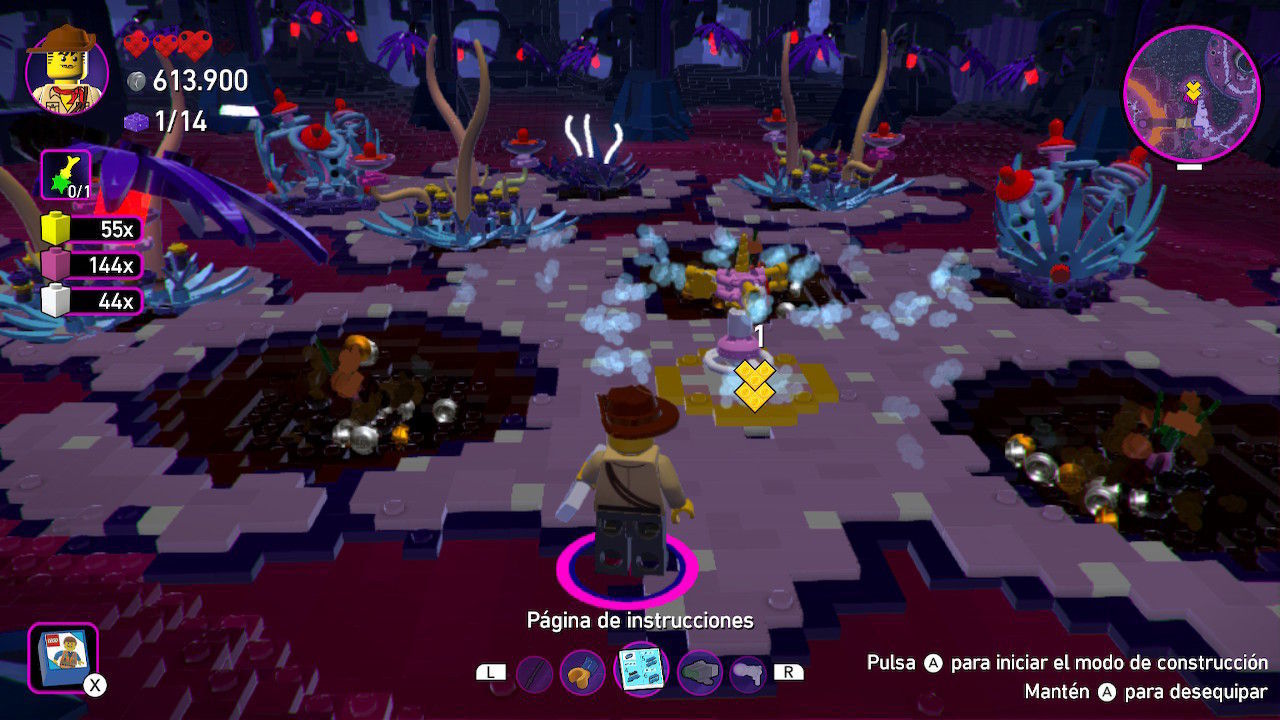 Sí, LEGO Worlds cambió para mejor este tipo de juegos, pero al mismo tiempo añadió un componente de exploración poco inspirado, con tareas repetitivas, construcciones anodinas y combates insípidos. Todos aquellos vicios adquiridos con el paso del tiempo en la saga LEGO se acrecentaron al pasar a esa estructura de mundo abierto, y se han vuelto a llevar aquí de forma casi calcada. Esto, que podría ser la clave para hacer más atractivo el videojuego a todos los públicos, acaba cansando a las primeras de cambio. Da igual que nos guste el planeta o la ambientación, o que creamos que hay mucho por hacer en el escenario al que acabamos de llegar. A los pocos minutos de juego nos sabremos todo o casi todo de memoria, y los puzles y construcciones por encargo, no nos supondrán ningún desafío. ¡Hasta los ladrillos morados aparecen marcados en el minimapa!