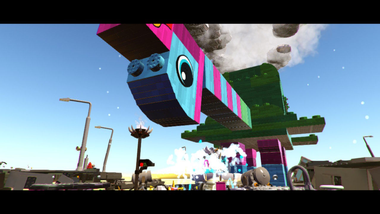 Todo en La LEGO Película 2 - El videojuego destila cierto tufo a reciclado de juegos anteriores, tanto en ambientaciones, mecánicas y diseño de niveles. Es casi como un pastiche de un montón de piezas anteriores, obligadas a encajar de una forma u otra en pos de un bien mayor o una imagen más grande. Por ejemplo, el sistema de plataformas es herencia directa de La LEGO Ninjago Película: El videojuego, y es tan simple que únicamente tendremos que pulsar el botón que se nos indique en el momento concreto, y los combates contra los jefes finales, unas enormes criaturas de Duplo, son todos muy parecidos en planteamiento y desafío. Tres cuartas partes de lo mismo se pueden aplicar a los puzles y rompecabezas. El videojuego nos irá dando los planos de construcción de muchos ingenios, desde trampolines para acceder a plataformas y salientes inalcanzables en un principio, a generadores eléctricos con los que abrir puertas, pasando por bocas de riego o incluso maquinaria de extracción con la que romper ese bloque que nos estorba. Hay muchos objetos, y eso nos ha gustado especialmente, sobre todo en términos de interacción con los escenarios. Siempre podemos buscar una forma de resolver un acertijo o un alto en el camino, pese a que todo esté tan definido y marcado por lo accesible de la jugabilidad.