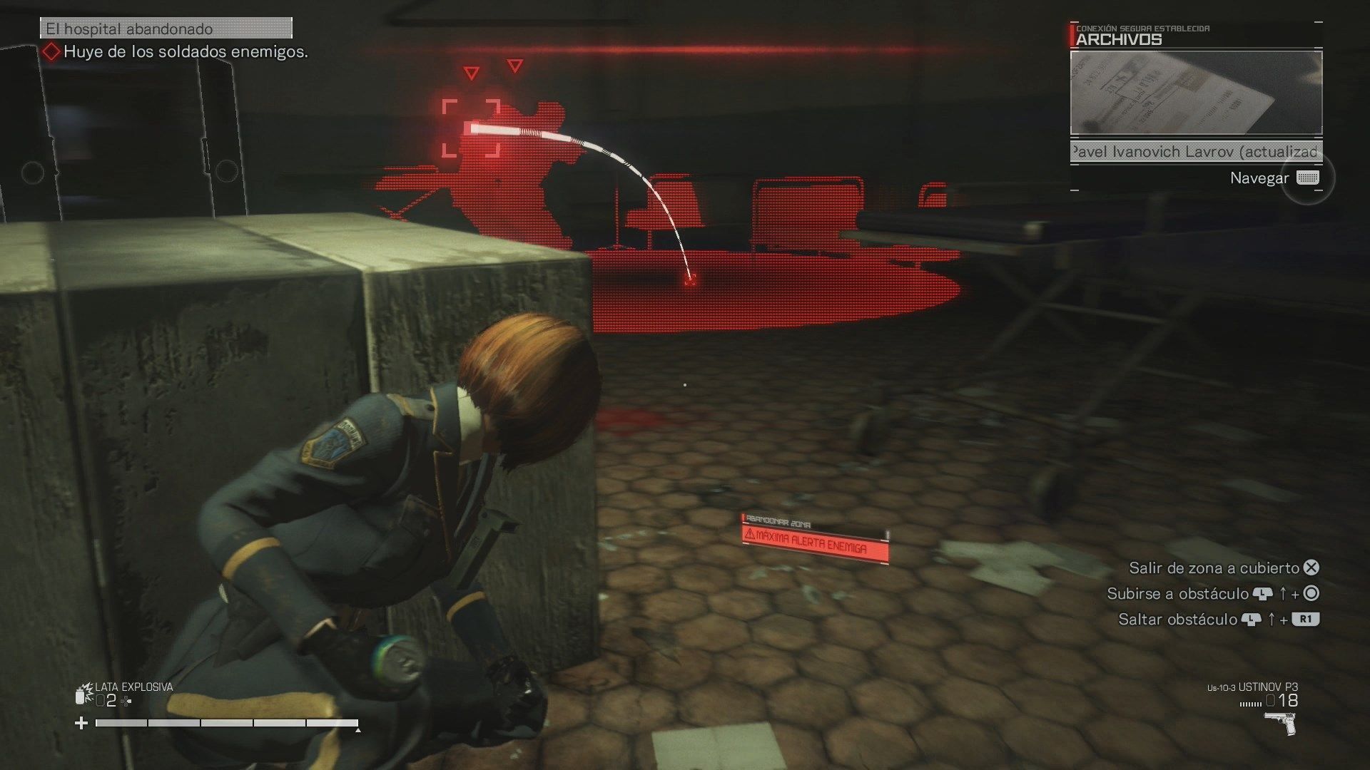 Durante las secuencias de acción la música es intensa, pero en el resto de la partida el sonido tiene un papel bastante menor y no está tan aprovechado como en otros títulos de sigilo donde puedes detectar el peligro por el ruido. En Left Alive las patrullas suelen ser bastante silenciosas –muchas ni se mueven- y la voz que nos indica la presencia de enemigos cercanos es bastante agotadora: suena constantemente, incluso si el enemigo está detrás de un muro.