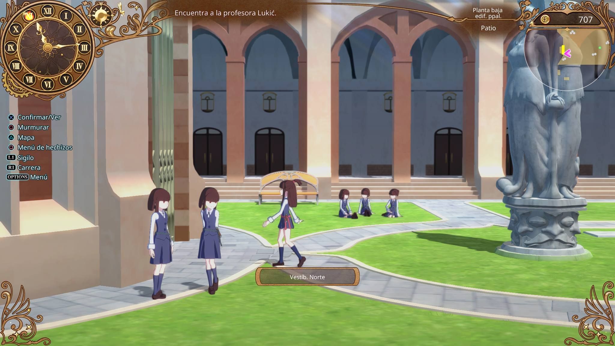 A veces para resolver estos ligeros puzles o misiones es necesario encontrarse en el lugar adecuado a la hora concreta, porque los estudiantes y clases se rigen por el horario. Pese a esto, Luna Nueva no parece un lugar muy vivo y nuestras únicas interacciones con los estudiantes son los diálogos, recibir misiones opcionales o escuchar a hurtadillas algunas conversaciones que puedan dar pistas de secretos y rumores. En definitiva, pasearemos mucho por las instalaciones, que pecan de mostrar pasillos clónicos guiados por un mapa un poco confuso ya que la cámara se desplaza lateralmente y a veces nuestra puerta está "al frente".