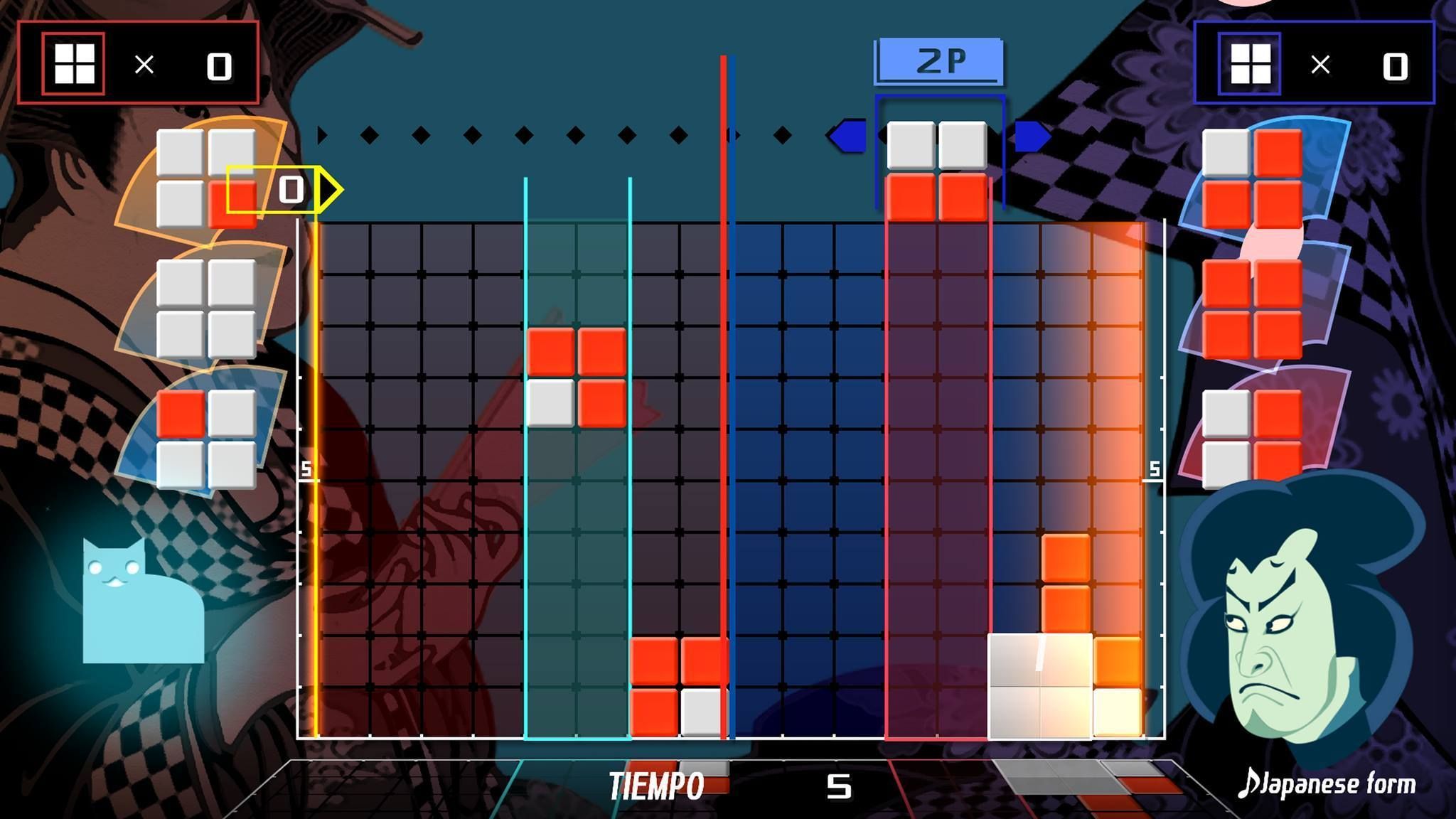 A diferencia de otros juegos de puzles, conseguir estos grupos del mismo tono no limpia el espacio automáticamente. Esto sucede cuando pasa la línea de tiempo, una barra vertical que se desplaza constantemente de izquierda a derecha. Esto permite por ejemplo crear combos si actuamos rápido y aumentamos el número de bloques de ese color antes del barrido, pero también es una molestia si andamos mal de espacio y nos urge borrar parte de la pantalla.