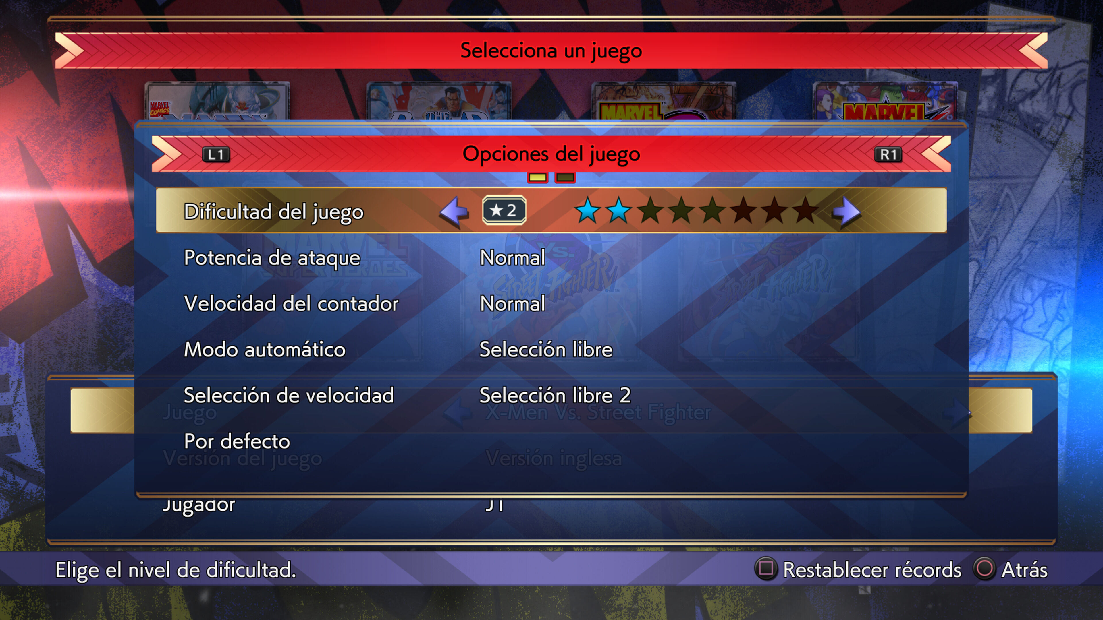 En primer lugar cada "recreativa" permite ajustar la dificultad de la IA, así que no tendrás problema en encontrar el punto ideal para tu habilidad con cada título. Hay más opciones para elegir la versión inglesa o japonesa, la potencia de ataque, la velocidad del contador, activar o desactivar personajes secretos y una útil opción para reducir los destellos en pantalla. En esta saga constantemente veremos parpadeos que no sólo pueden ser molestos sino también peligrosos para ciertos jugadores, así que esto cansará menos la vista.