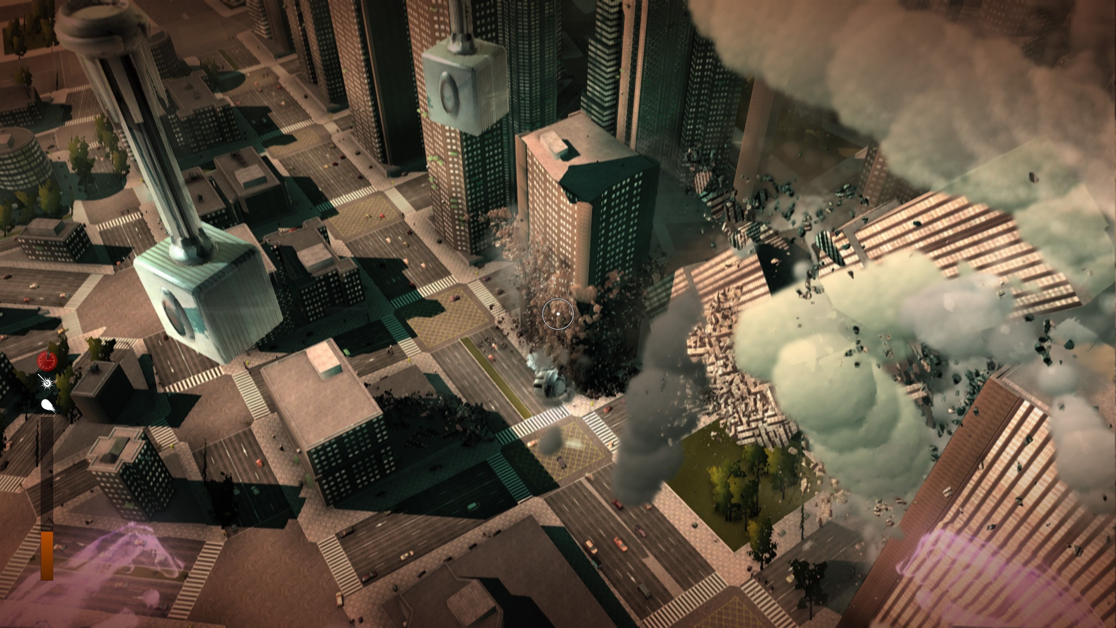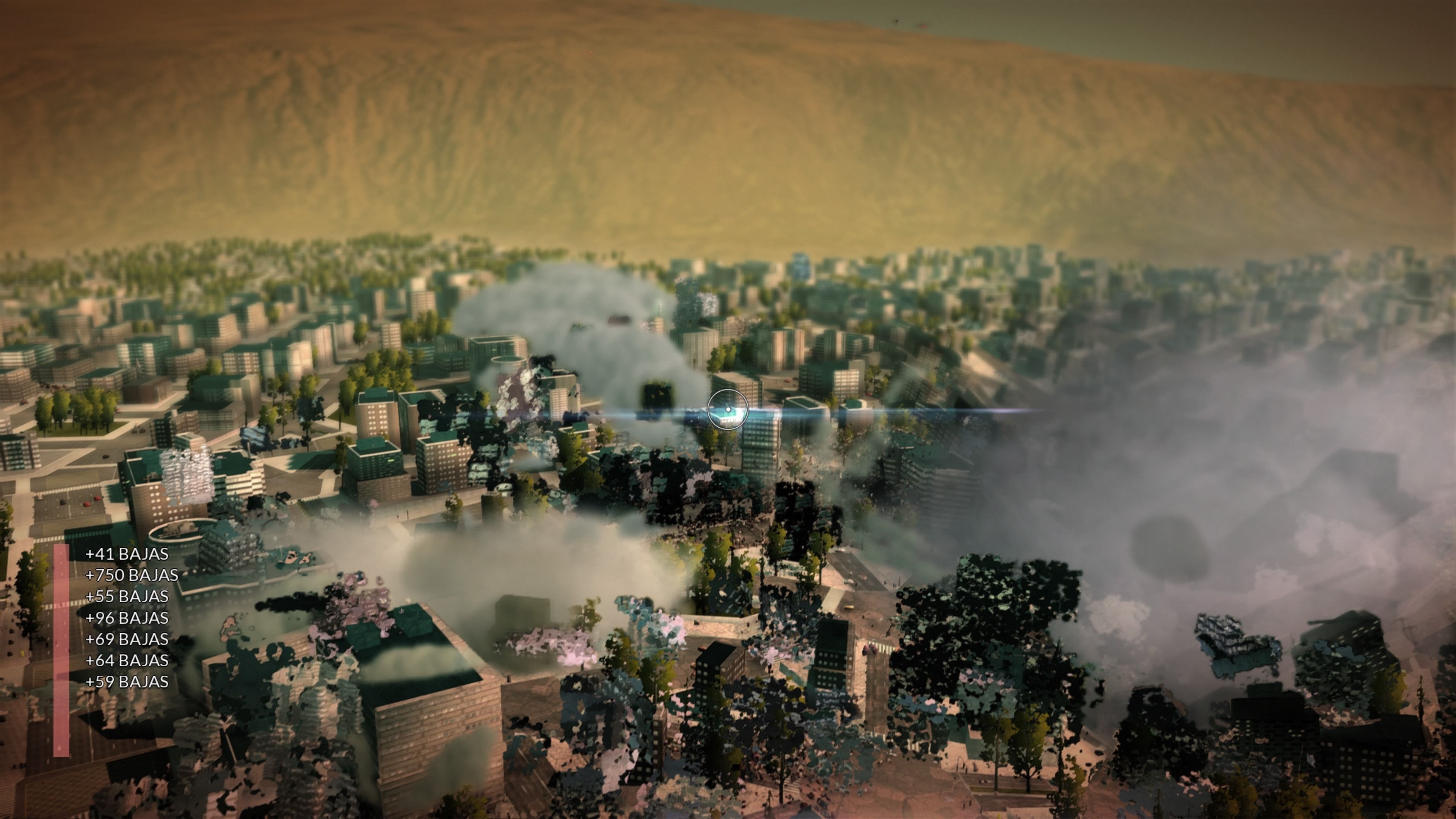 Además de matar a los enemigos tendremos que estar muy pendientes de la barra de destrucción, la cual nos indicará el número de bajas civiles que hemos causado durante nuestra misión. Estas bajas pueden ser provocadas por los aliens, los cuales utilizarán todo su armamento para acabar con la tierra, o por nosotros mismos, por lo que habrá que tener mucho cuidado antes de utilizar nuestros poderes contra la población civil. En el supuesto de que la barra llegue a cero, la partida se reiniciará hasta el punto de control más cercano, lo cual no supone un castigo excesivo.