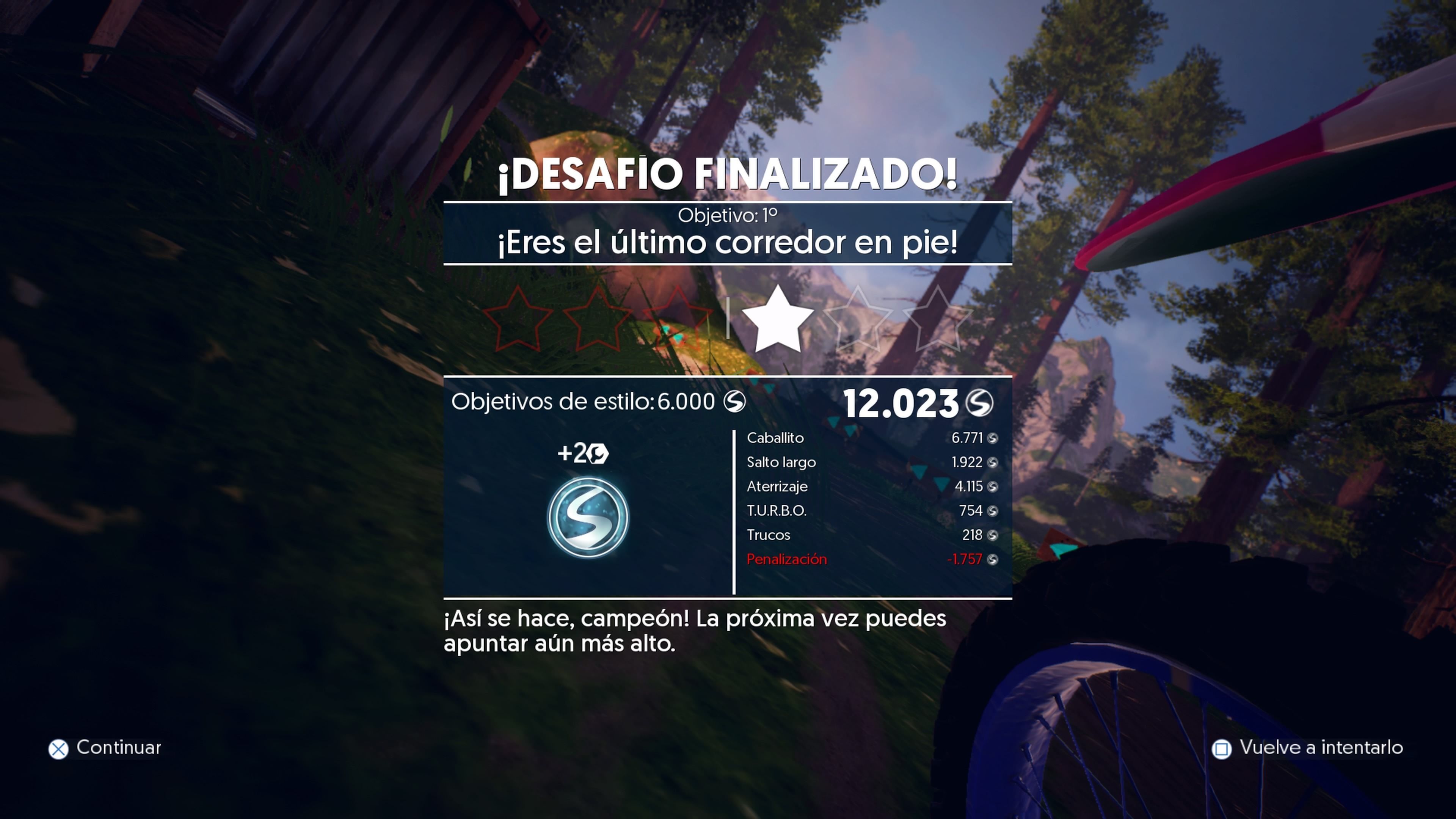 Adentrándonos en los modos de juego, el modo Carrera es el que ofrece más horas de juego y una ligera profundidad. El esquema básico es que tendremos que ir superando una serie de retos para conseguir estrellas que nos permitirán avanzar hacia desafíos cada vez más exigentes. Es por ello que antes de cada carrera tendremos que decidir si queremos conseguir una, dos o tres estrellas, determinando así la dificultad de la prueba. De esta forma, si decidimos apostar, por ejemplo, dos estrellas y conseguimos el objetivo, las sumaremos a nuestro marcador total, sin embargo, en caso de no conseguir el resultado apostado, esas dos estrellas se restarán de nuestro marcador. Para poder recuperarlas podremos repetir la prueba apostando nuevamente dos estrellas, arriesgando con tres o siendo más conservadores con una.