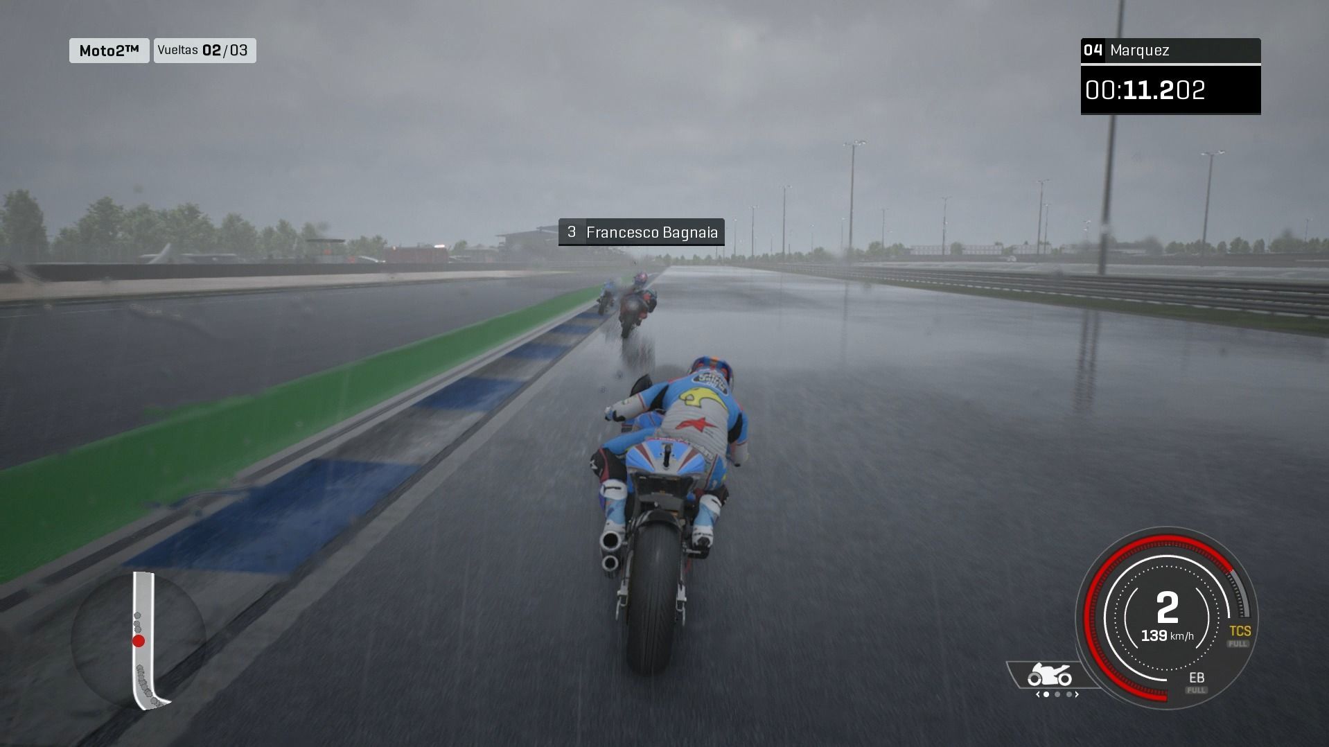 Uno de los grandes problemas de la anterior entrega fue que utilizaba un motor gráfico anticuado, algo que este año se ha solventado implementando Unreal Engine 4. Esto ha permitido al título dar un salto muy importante en la calidad visual , disfrutando ahora de modelados más detallados, texturas a gran resolución, iluminación realista y un sistema de partículas muy potente, destacando el acabado de la lluvia y las pistas mojadas. Este motor también ha permitido pulir el sistema de físicas y, aunque a veces ofrece situaciones inexplicables, en términos generales reproduce bien los impactos y el comportamiento de las motos.