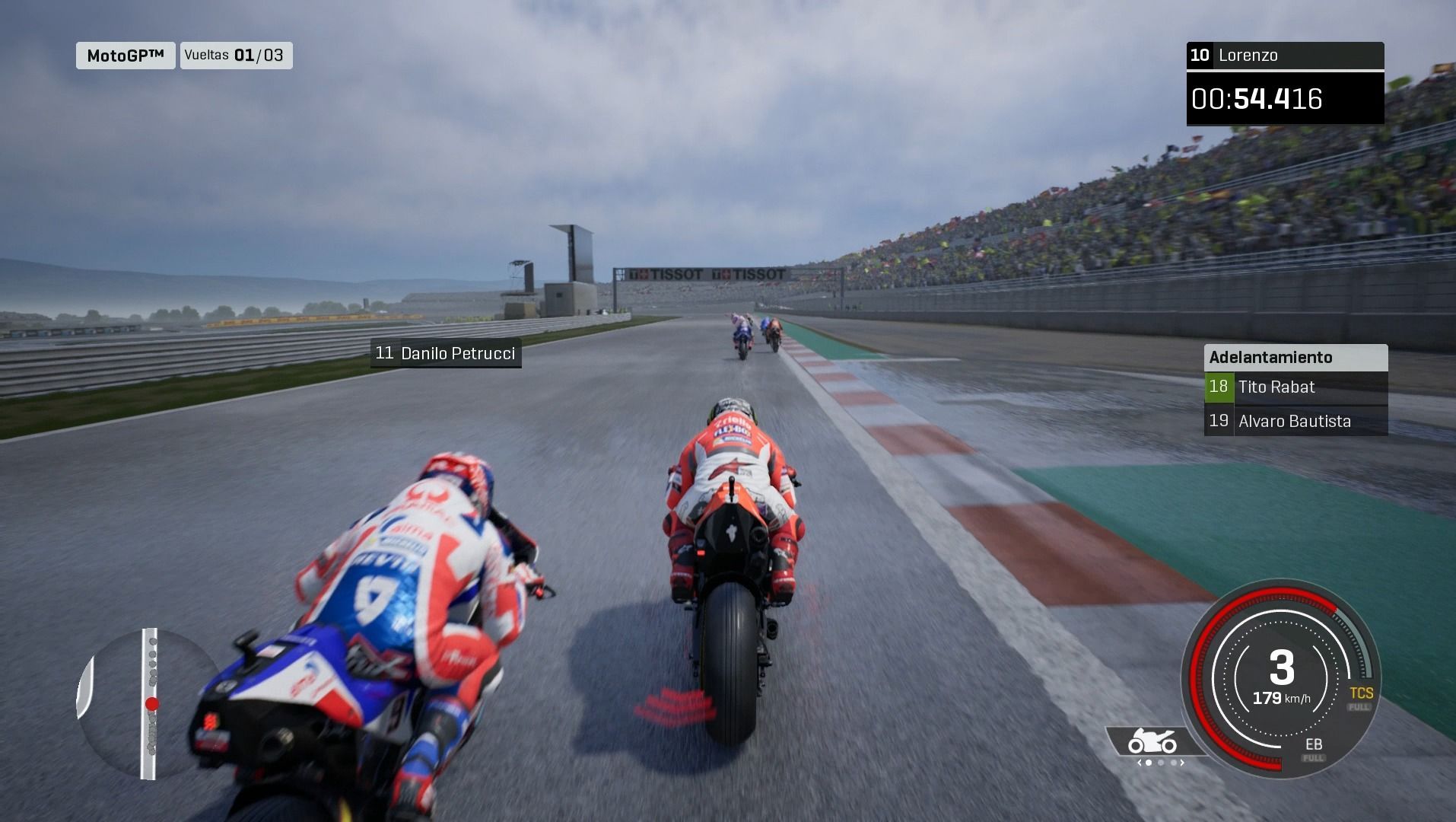 En solitario también contamos con: Campeonato, Contrarreloj y Gran Premio, pudiendo personalizarlos libremente para disfrutar de una experiencia a nuestra medida. En las opciones multijugador online disputaremos Carreras públicas o privadas, con emparejamientos rápidos y una conexión casi siempre estable. Además, se incluye el modo eSport MotoGP Championship, el cual va destinado a las competiciones profesionales. Por último, este año no disponemos de pantalla partida para dos jugadores, una ausencia más que reseñable.