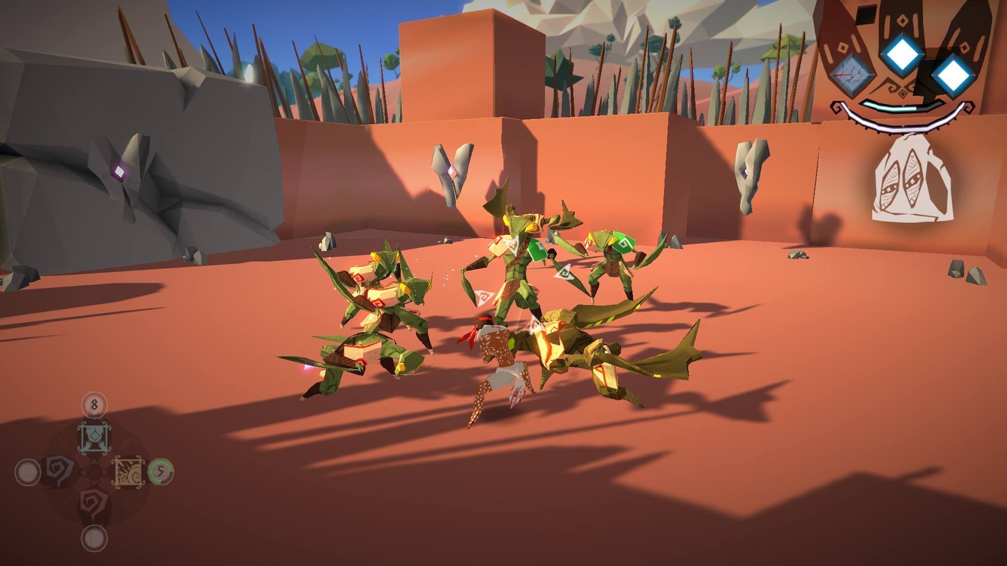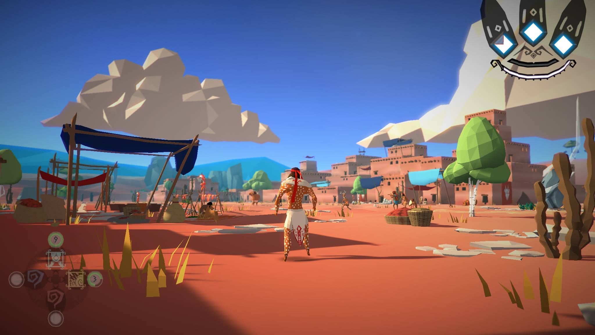 Visualmente a ratos peca de simple –los terrenos desérticos-, mientras que en otros momentos el low-poly funciona estupendamente con la arquitectura de sus poblados o la naturaleza. No causará el mismo impacto que Fe, un título que sabe jugar mejor con la iluminación y los colores, sin embargo los desarrolladores han aprovechado bien sus limitaciones técnicas. Únicamente nos ha molestado que en ocasiones las barreras que delimitan el área jugable no estén del todo claras, lo cual crea efectos extraños -¿por qué no puedo subir ese pequeño montículo si he subido por otros más grandes?-.