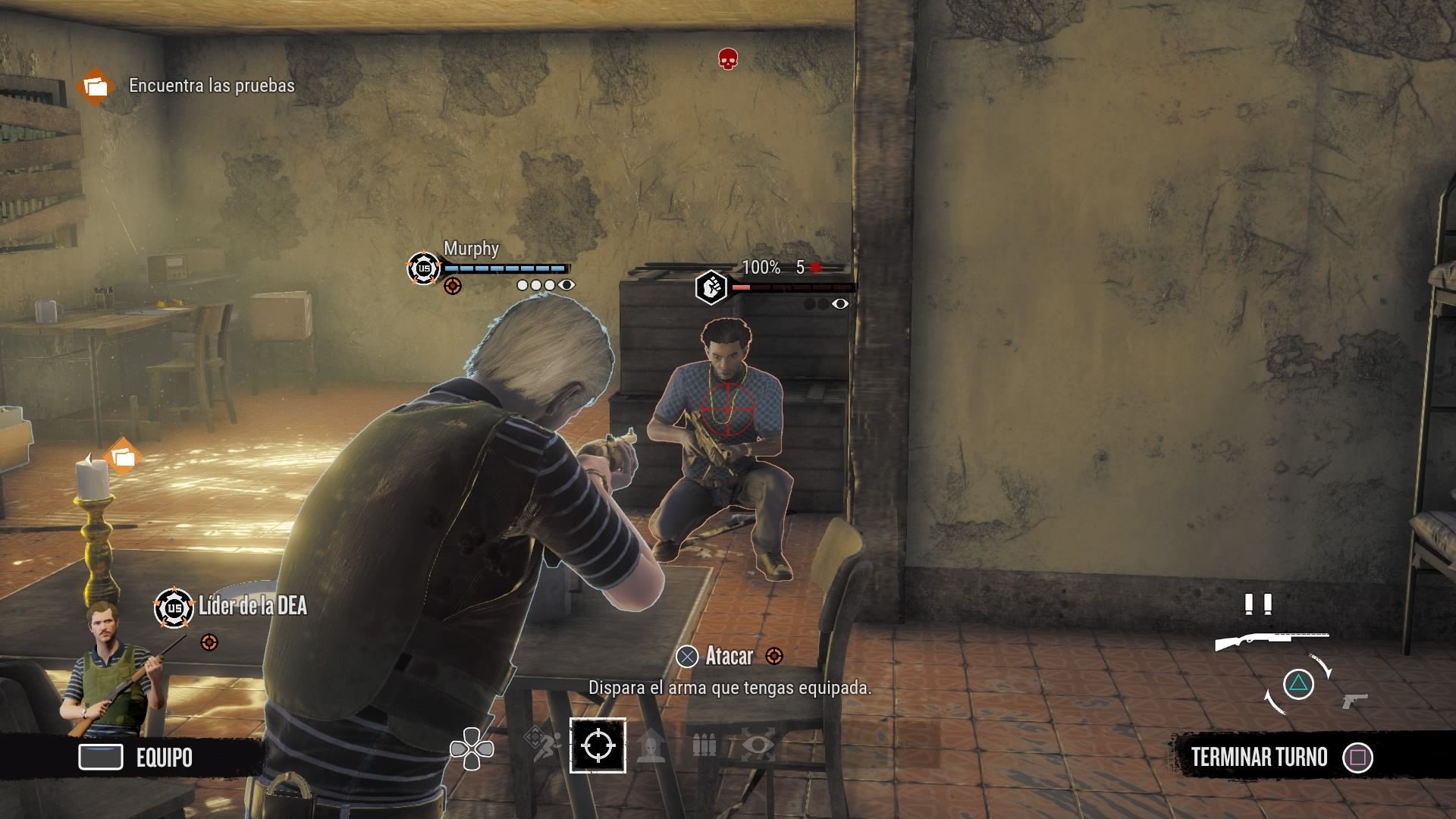 Sin embargo, el título se se traiciona a sí mismo, pues las tácticas y estrategias que más servirán contra una agresiva y torpe IA es la del cebo, sacrificando unidades básicas del equipo para que las más fuertes puedan entrar al trapo y machacarlas a las primeras de cambio. De poco importan a veces las coberturas o los planes pensados. El título es frenético y quiere intercambio de plomo, claro, pero cualquier elemento táctico se desvanece a los pocos minutos cuando nos damos cuenta del tipo de combate o reglas de enfrentamiento que prioriza la inteligencia artificial enemiga. Por ejemplo, en niveles con varias alturas -como aquellos ambientados en ciudades y entornos urbanos-, el rival decidirá bajarse de su mejor posición rápidamente, sobre todo si le enseñamos la carnaza correspondiente. Nosotros hemos superado niveles a priori difíciles sacando a los peones -generalmente, la policía colombiana- a la vista para que los matones de Pablo se lancen a por ellos y se descubran o se pongan a tiros. Aunque generalmente hablamos de un videojuego simple y fácil -no nos costará demasiado superar algunos encargos-, agradecemos que busque constantemente sorprender con misiones variadas, con recogida de pistas y documentos, tareas de eliminación, de resistencia a un número de rondas o de destrucción de laboratorios y almacenes de cocaína.