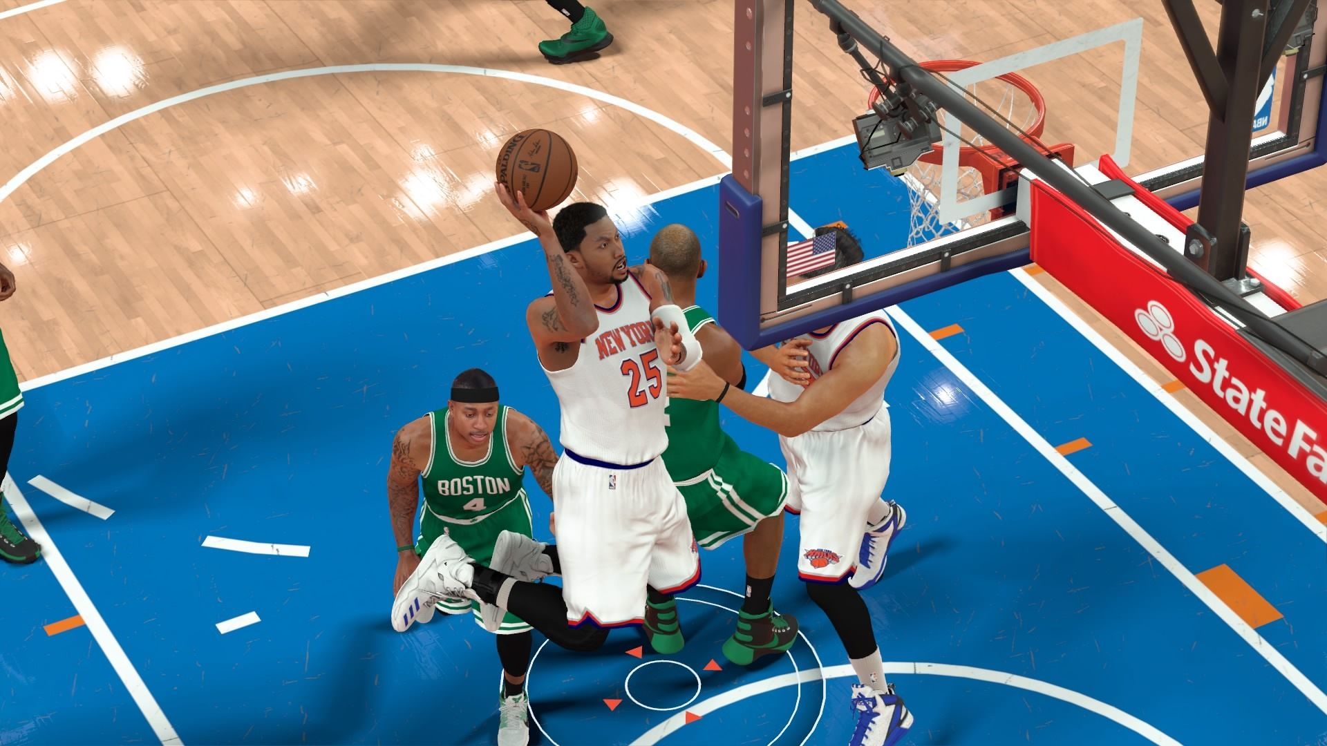 Una vez en la cancha, el sistema de juego es idéntico al de años anteriores. La cámara se sitúa en la parte trasera de la pista y tenemos un indicador en la parte superior derecha que nos marca con letras lo bien o mal que estamos jugando. Según esta clasificación y los puntos, rebotes o asistencias conseguidos, obtendremos una mayor o menor recompensa de VC. Este sistema de calificación, aunque se muestra muy efectivo y divertido, sigue siendo un tanto injusto con la sanción y premio que reciben algunas acciones, algo que debería ser equilibrado para evitar frustrar al jugador.