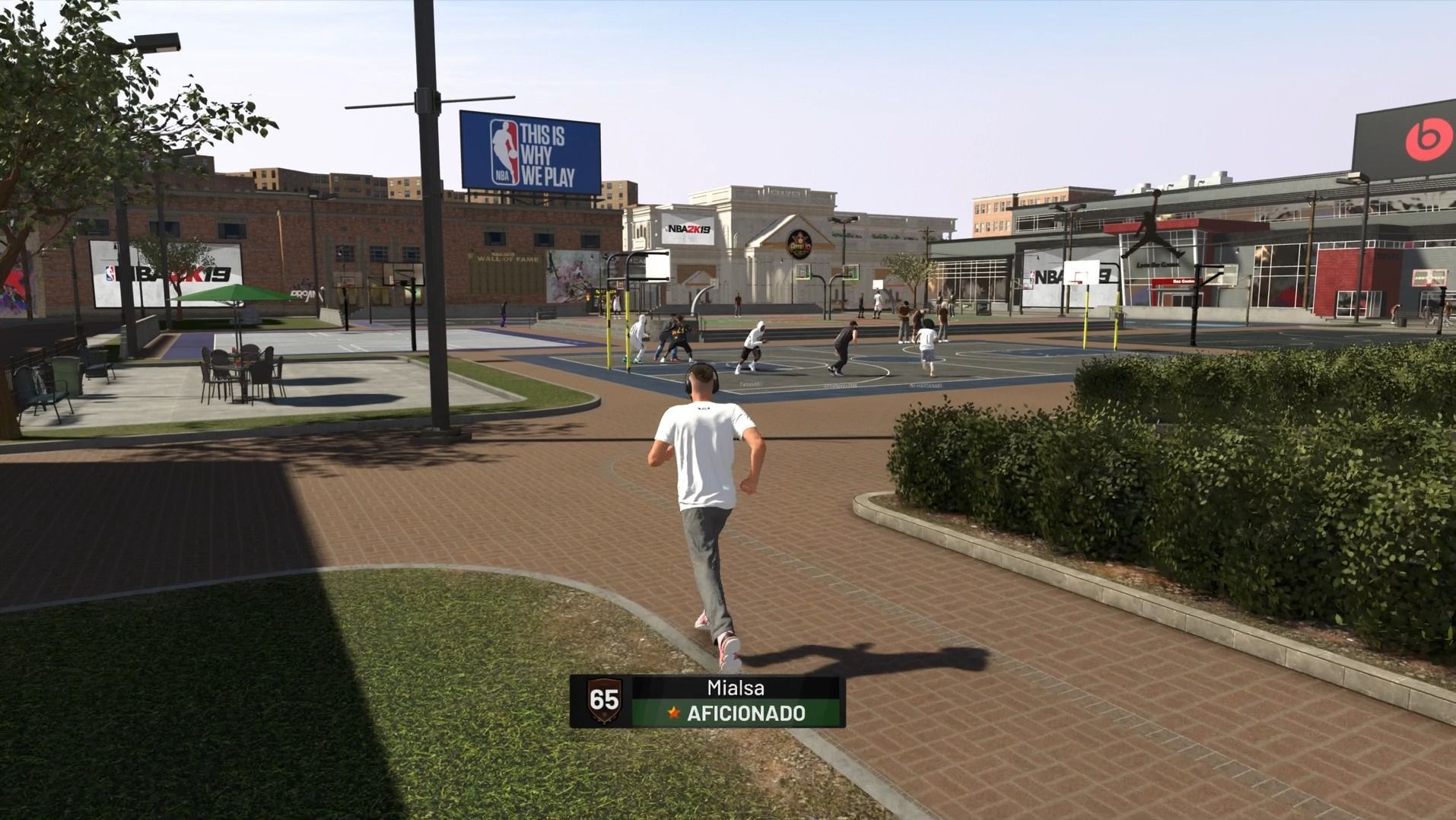 El Parque es el espacio común en el que se reúnen decenas de jugadores online y que para esta temporada se ha renovado con un nuevo entorno mejor distribuido, más decoraciones, navegaciones más fluidas y medios de transporte, algo que se echaba mucho de menos. El Parque nuevamente cuenta con todo tipo de canchas callejeras para disputar partidos contra otros jugadores online. Además, este año se ha incluido una nueva sección de pistas equipadas con camas elásticas, dando como resultado un estilo de juego mucho más arcade y divertido. También volvemos a contar con el gimnasio y el pabellón de entrenamiento, dos lugares idóneos para mejorar a nuestro jugador. De la misma forma, también se incluye el nuevo Jordan Rec Center, para la vuelta de las pandillas, y multitud de tiendas para cambiar nuestro aspecto visual, pudiendo cortarnos el pelo, tatuarnos, comprar ropa de calle, zapatillas o visitar la tienda oficial de la NBA.