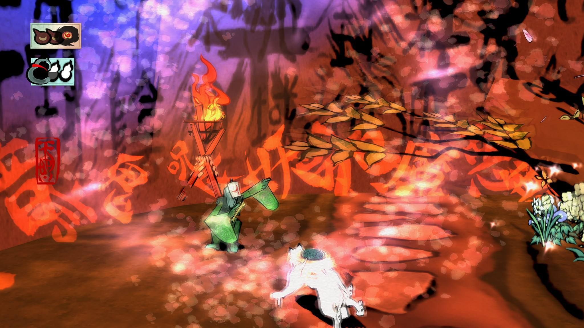 Igualmente se podría haber aprovechado para incluir una remasterización de Ōkamiden, nuevos desbloqueables de algún tipo –comentarios de equipo, etc.-, mantener control opcional por movimientos –con Move o Kinect-, aprovechar el panel táctil del DualShock 4 para dibujar o, siendo excesivamente optimistas, poner voces a los personajes –el juego utiliza un murmullo cuando hablan que resulta un poco incómodo durante largas charlas, os aconsejamos bajar su barra de volumen-. En definitiva, una remasterización correcta que podría dar más de sí.