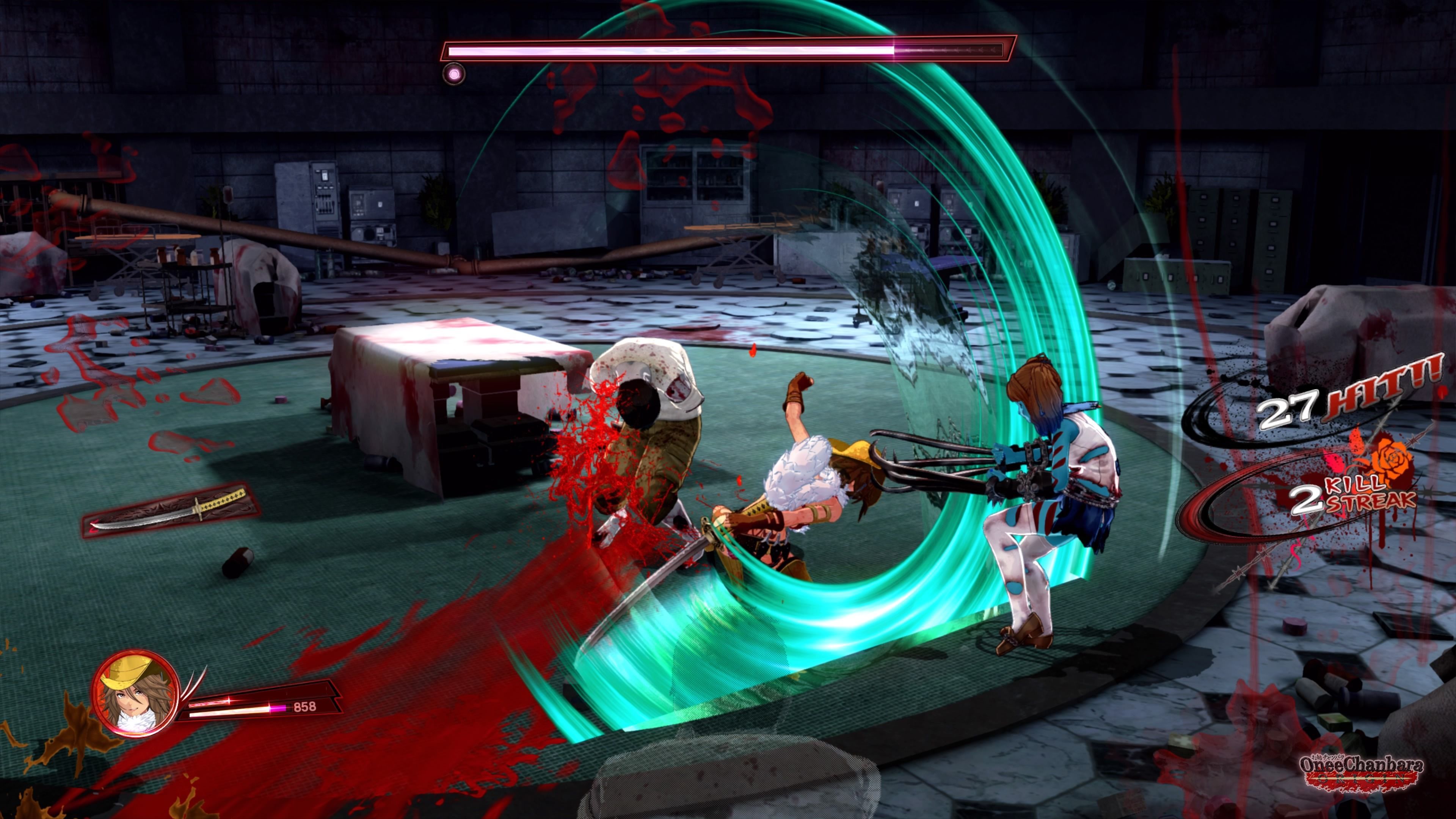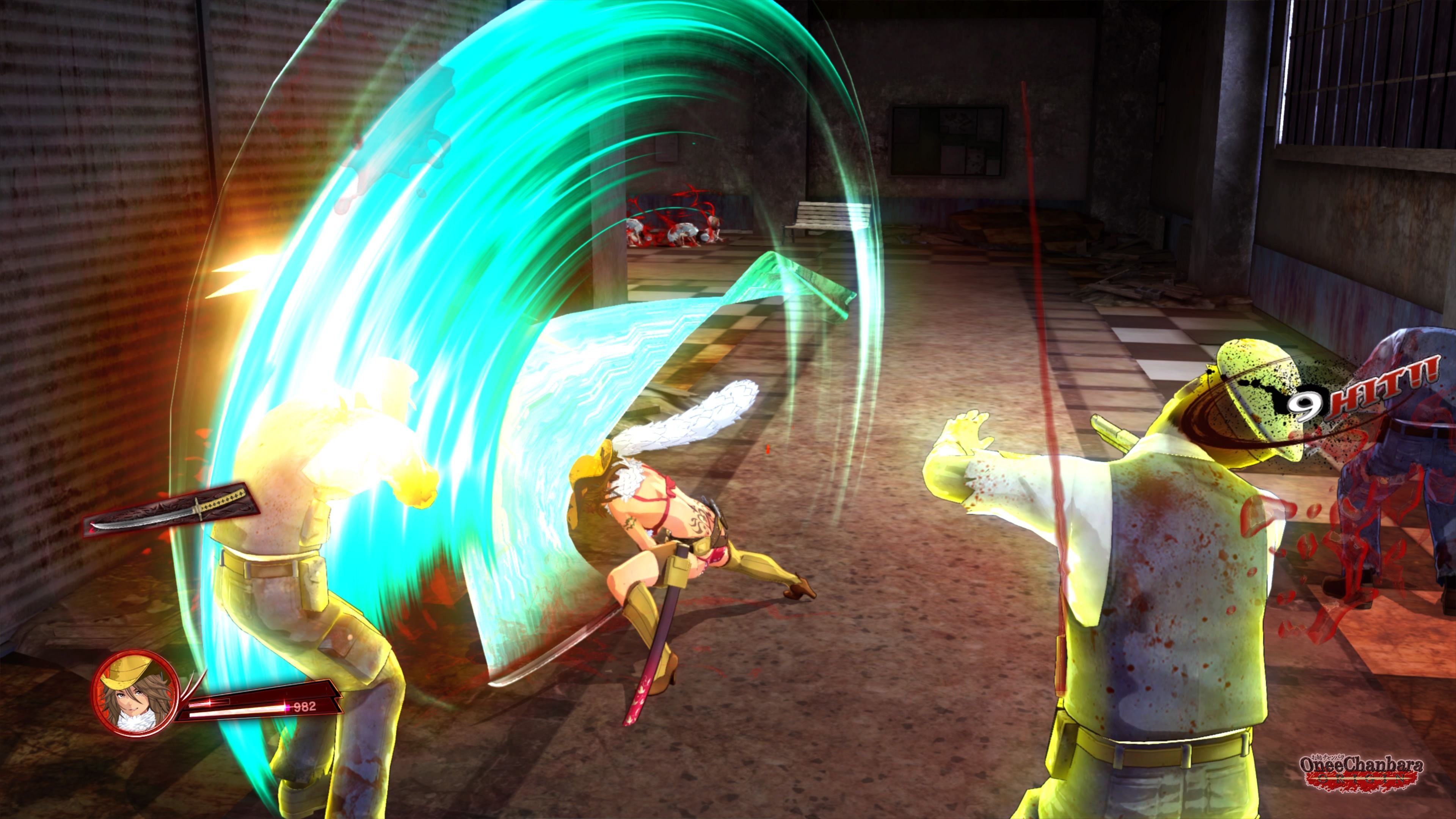 Y para ello debemos usar las armas de las protagonistas Aya y Saki (a esta última la desbloqueamos al cabo de un número de niveles), las cuales dominan los combates cuerpo a cuerpo como nadie. El manejo es muy simple, pero tiene cierta gracia. Al ataque básico que resta vida a los rivales se une otro que está pensado para rebajar su guardia y dejarles grogui durante unos segundos, los cuales podemos aprovechar para efectuar un ataque devastador (y bastante espectacular, todo hay que decirlo) que les fulmina de manera instantánea.