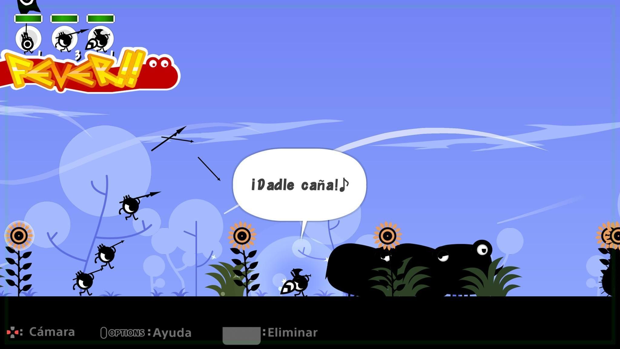La cuestión se complica cuando no se trata sólo de avanzar, sino de luchar, y estás sufriendo el ataque de los enemigos. Atacar tiene su propia orden de cuatro botones –Pon, Pon, Pata, Pon- que debes combinar con la de avanzar y otras más que se introducen poco a poco para, en resumen, hacer que entren en combate, realicen movimientos defensivos, etc. Buen oído, memorización y nervios controlados, porque no hay nada peor que caer en una espiral de errores que ponga en peligro la salud de tu grupo. No es un juego tremendamente difícil pero desesperará a los jugadores con poca paciencia, no te dejes engañar por su aspecto.