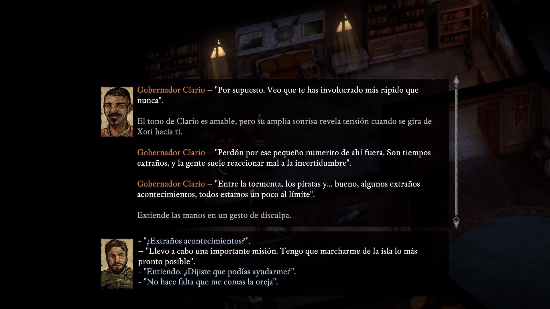 Pasaremos un gran tiempo de esta aventura a bordo de un barco, de hecho es parte fundamental de las mecánicas y la jugabilidad, ya que podemos ir de un lado a otro en nuestra embarcación, invitándonos a hacernos con el timón -y nunca mejor dicho- de una aventura que, si ya nos pareció fascinante en ordenadores, ha vuelto a engancharnos como ninguna otra. Pillars of Eternity II: Deadfire es un videojuego exquisitamente escrito, bien planteado y estructurado, con cientos de líneas de diálogo, ricos textos y múltiples opciones, que nos invitaran a poner de nuestra parte -voces en perfecto inglés y textos en español-. Ya os lo advertimos: no es un videojuego en el que pulsar compulsivamente siguiente a las mínimas de cambio o en el que dejarse llevar por las prisas cuando asistimos a una conversación. Obsidian se toma su tiempo en plantear las situaciones, diseñar los enemigos, exponer diálogos o lanzarnos cuestiones y decisiones.
