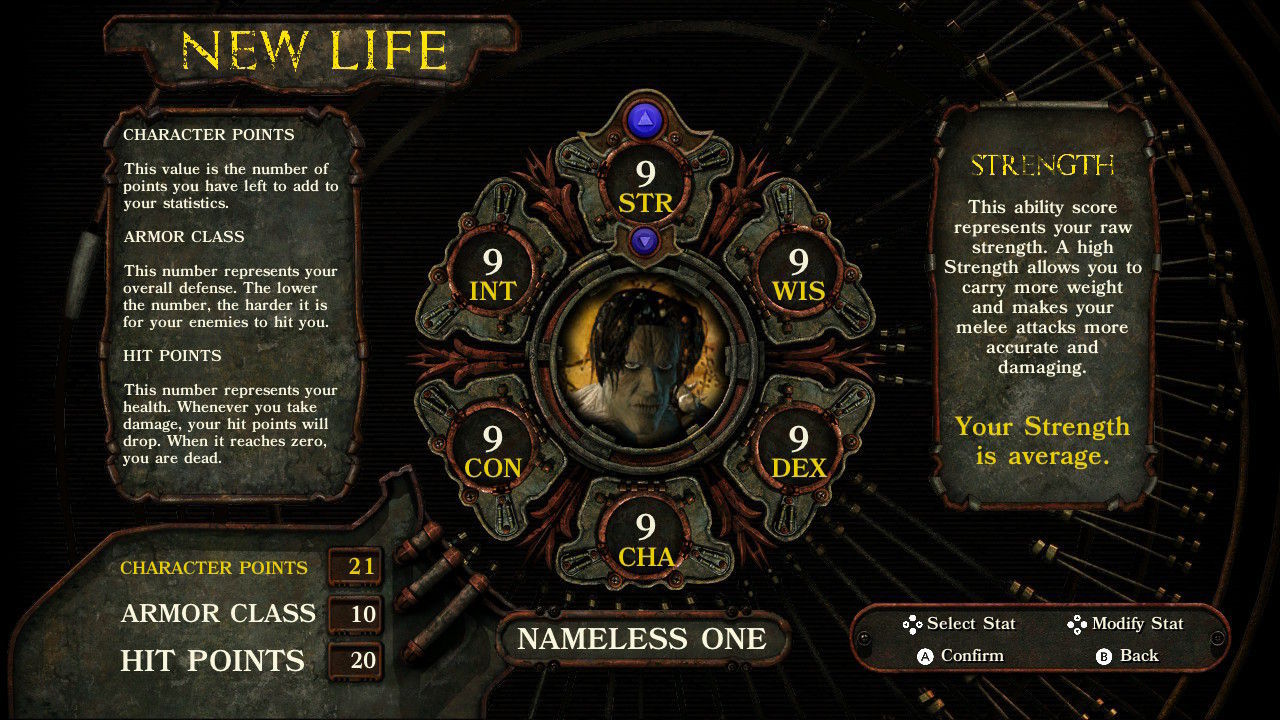 Estamos ante un videojuego muy duro, macabro y profundo, que se alejaba -y se aleja- de lo habitual en este género. Olvidad por un momento las habituales vicisitudes de dragones, reyes, orcos y castillo. La fantasía está presente, sí, pero hablamos de un universo profundamente decadente, gótico y grotesco, que arroja al jugador durante su historia principal muchos temas sobre el papel de la vida y la muerte o el rol de la religión y su promesa del más allá. Como en Baldur’s Gate y su segunda parte, tendremos decenas de secundarios en los que inmiscuirnos y volcarnos, con trasfondos muy interesantes y complejos, así como con diálogos exquisitamente planteados. Sabía jugar inteligentemente con el multiverso, los planos de la realidad de Dragones y Mazmorras y con la propia idiosincracia de los aliados, que nos ofrecía el grupo de compañeros más extraño y rocambolesco jamás visto en un RPG -Morte, la calavera flotante, sigue siendo uno de nuestros personajes preferidos-.