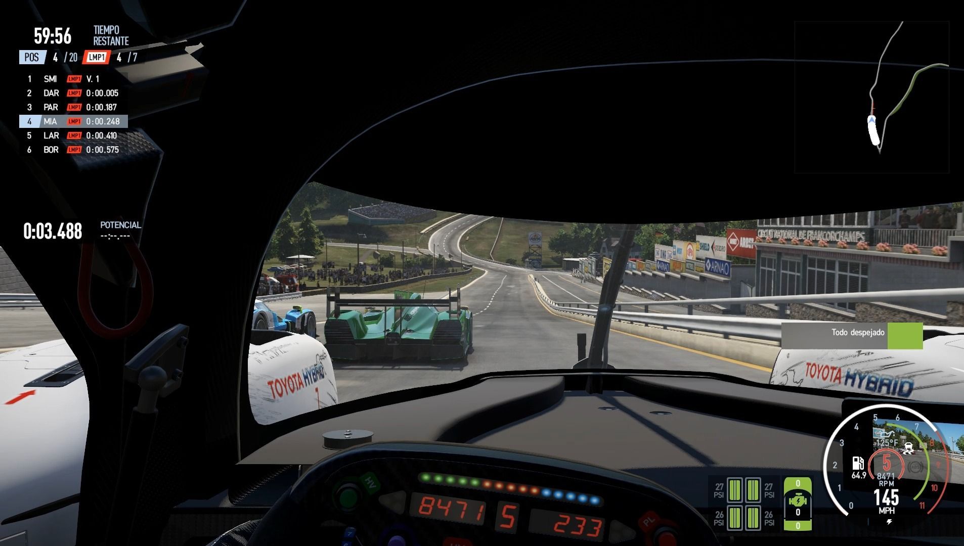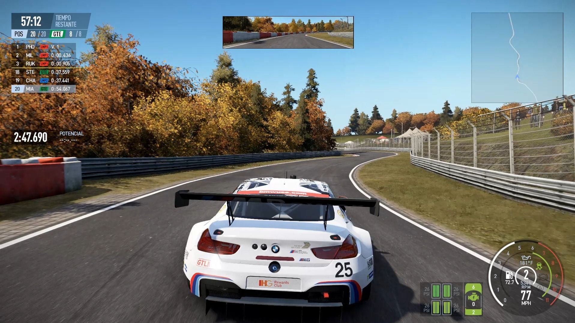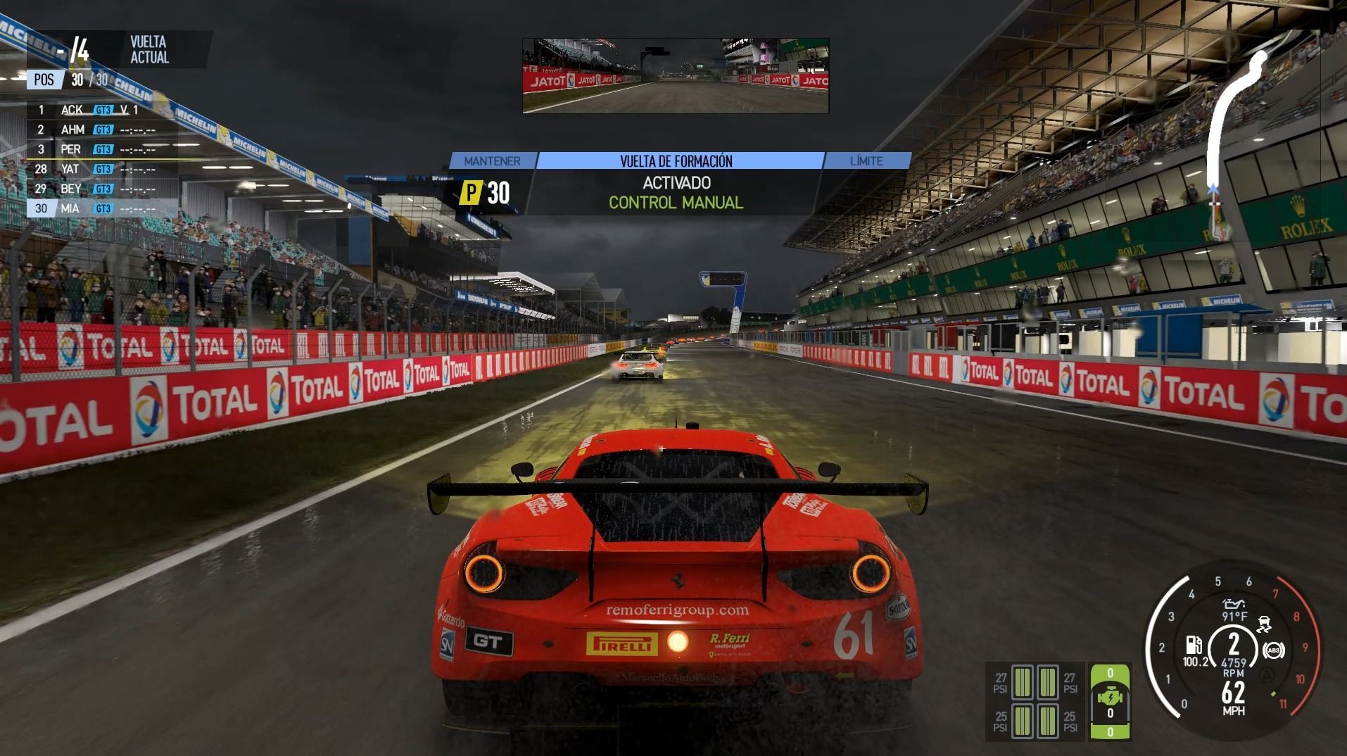 Toda esta información adicional se ve complementada con una excepcional recreación del asfalto. Cuesta recordar un videojuego que haya sido capaz de reproducir con tantísimo detalle la rugosidad del pavimento, sus irregularidades o los pianos, consiguiendo con ello una sensación tremendamente inmersiva. Lógicamente, el último factor que influye en nuestro pilotaje es el clima. Para esta nueva entrega encontramos un total de 18 opciones, las cuales irán evolucionando en tiempo real gracias al nuevo sistema Live Track 3.0.