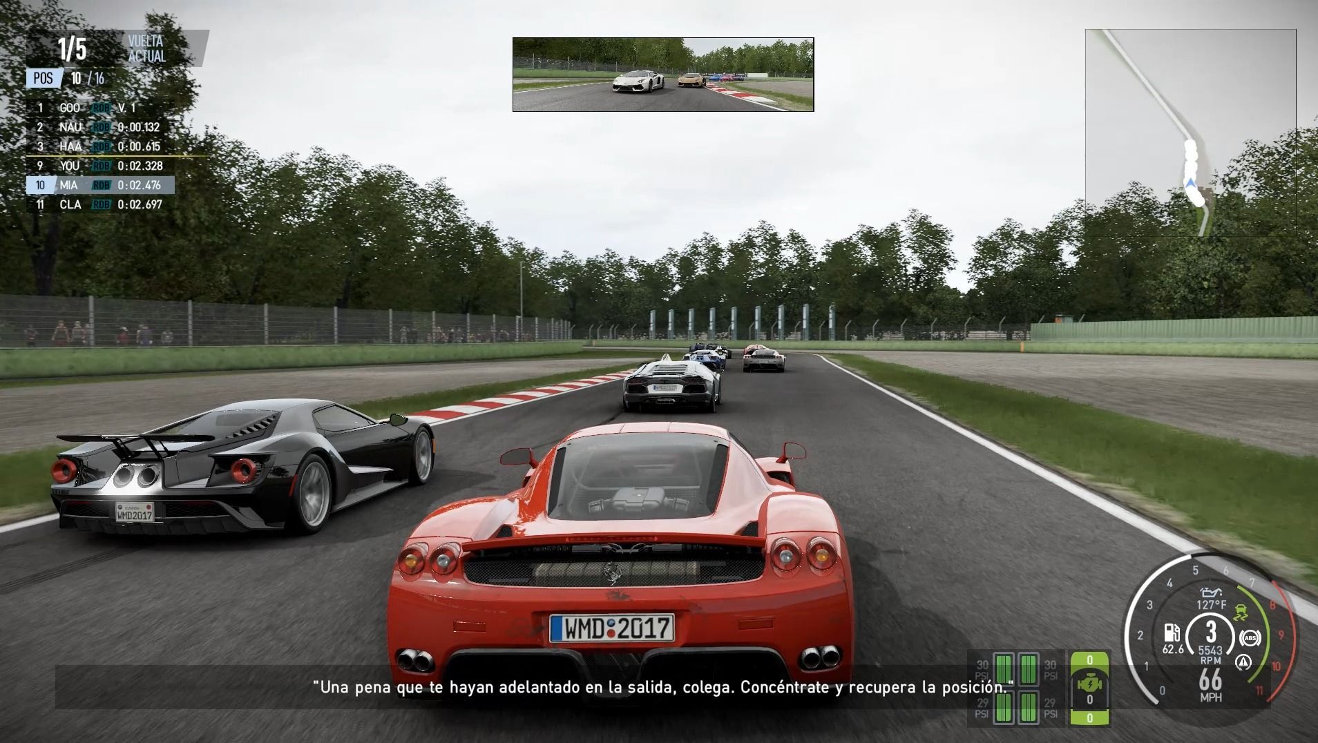 Finalmente, tenemos que hablar sobre la inteligencia artificial; en esta nueva entrega encontramos un mayor nivel de realismo y ritmos más competitivos, consiguiendo con ello que la experiencia jugable sea mucho más inmersiva. A la hora de definir la dificultad contaremos con dos parámetros: Competitividad y Agresividad. El primero de ellos mide la calidad de los pilotos y sus ritmos de carrera, mientras que el segundo modifica el comportamiento de los rivales para que cierren mejor los espacios, intenten adelantamientos más peligrosos o sean más agresivos en la salida. Por último, también la IA reacciona de forma dinámica a las situaciones de carrera, por lo que en caso de presionarlas empezarán a cometer errores e incluso salirse de la pista.