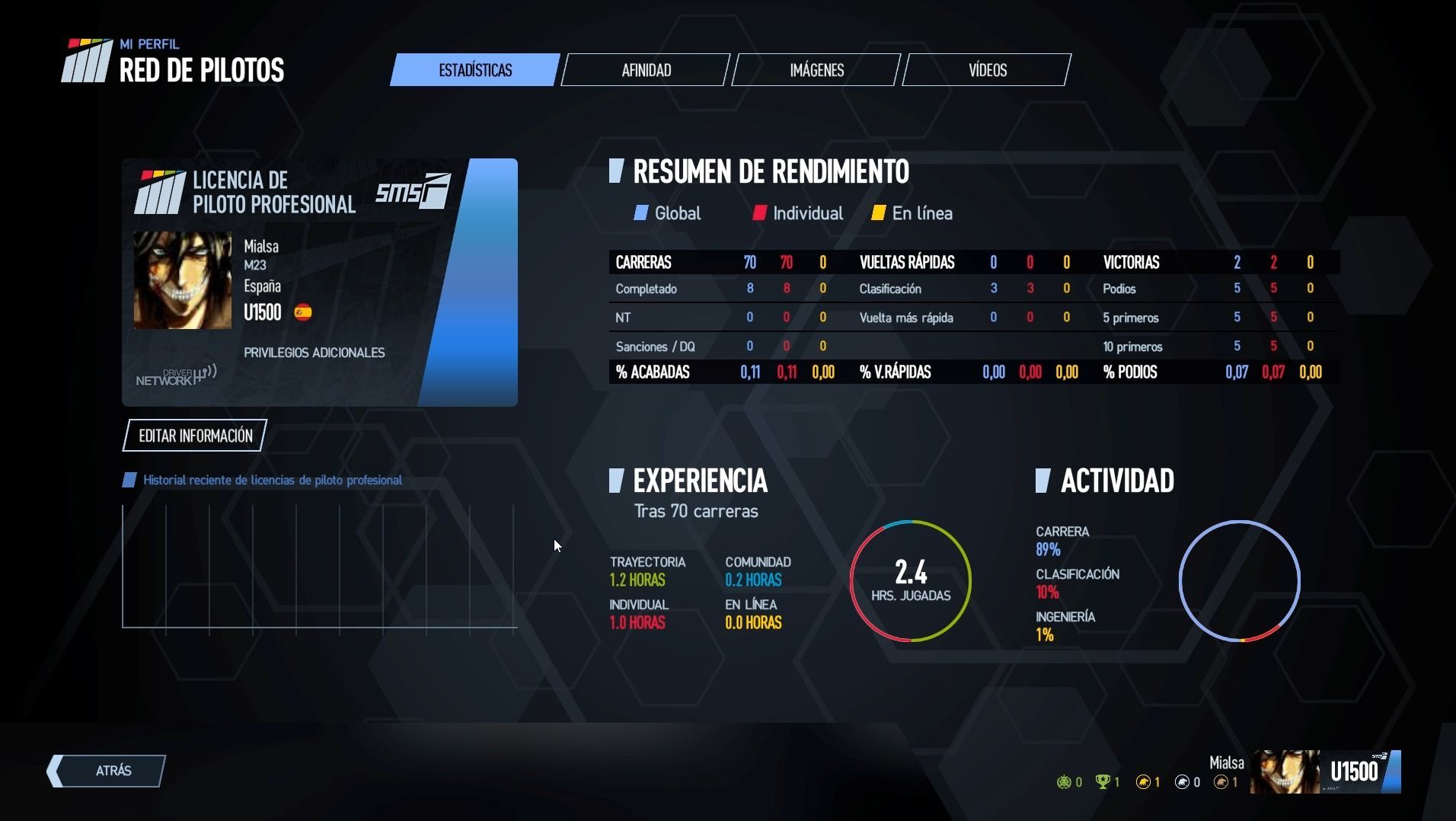 El primer factor medirá nuestro estilo de pilotaje, valorando aspectos como no provocar accidentes, respetar los márgenes del circuito o no saltarnos las reglas, apareciendo reflejado dicho comportamiento en nuestra licencia con una letra (U-F-E-D-C-B-A-S). La competitividad medirá nuestra calidad como pilotos, no solo por nuestros resultados, sino también por la pericia de los rivales online. De esta forma, si ganamos carreras contra mejores conductores obtendremos más puntos, midiéndose el rendimiento global con un número que también aparecerá en la licencia y que irá de 100 a 5000.