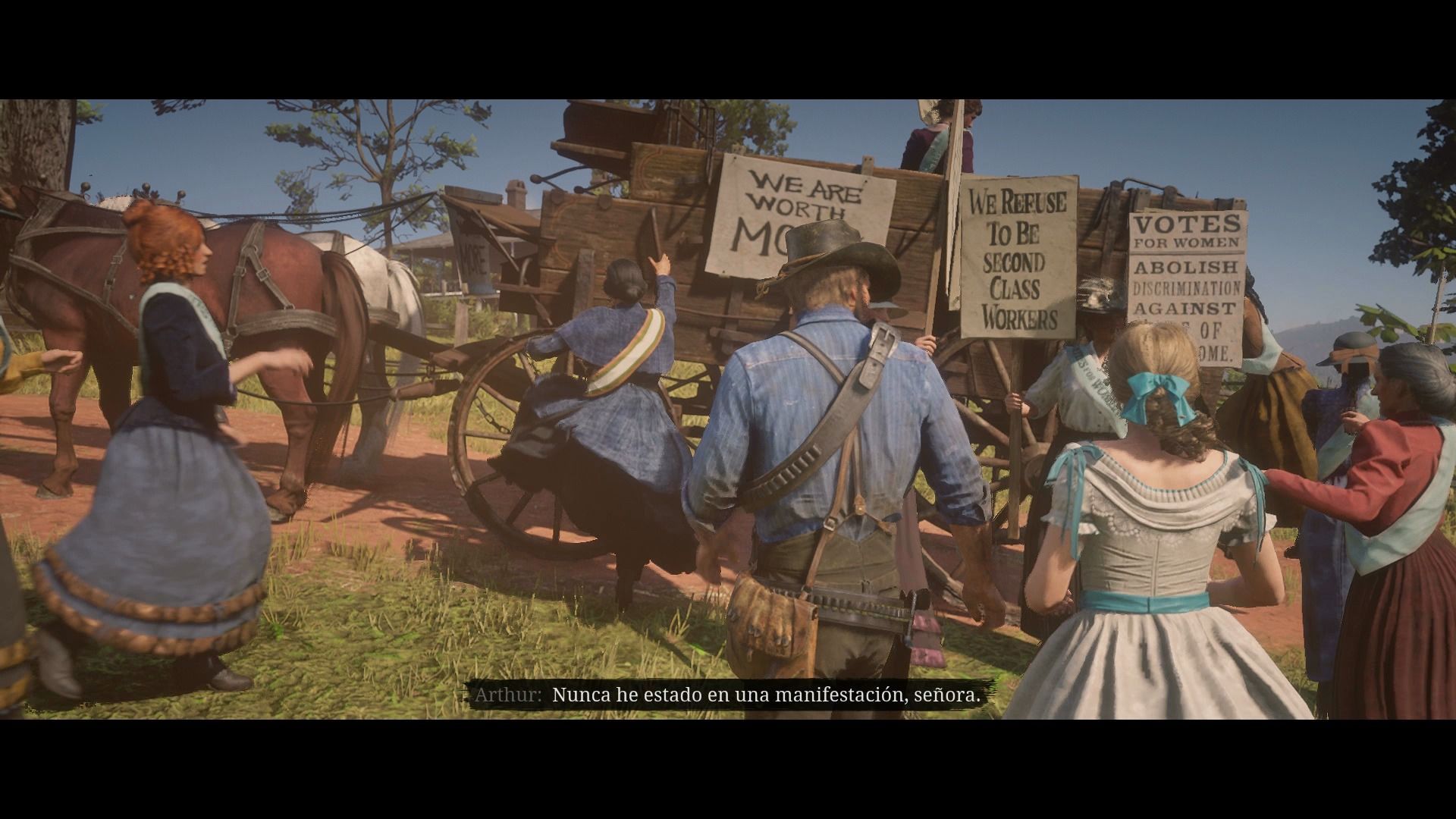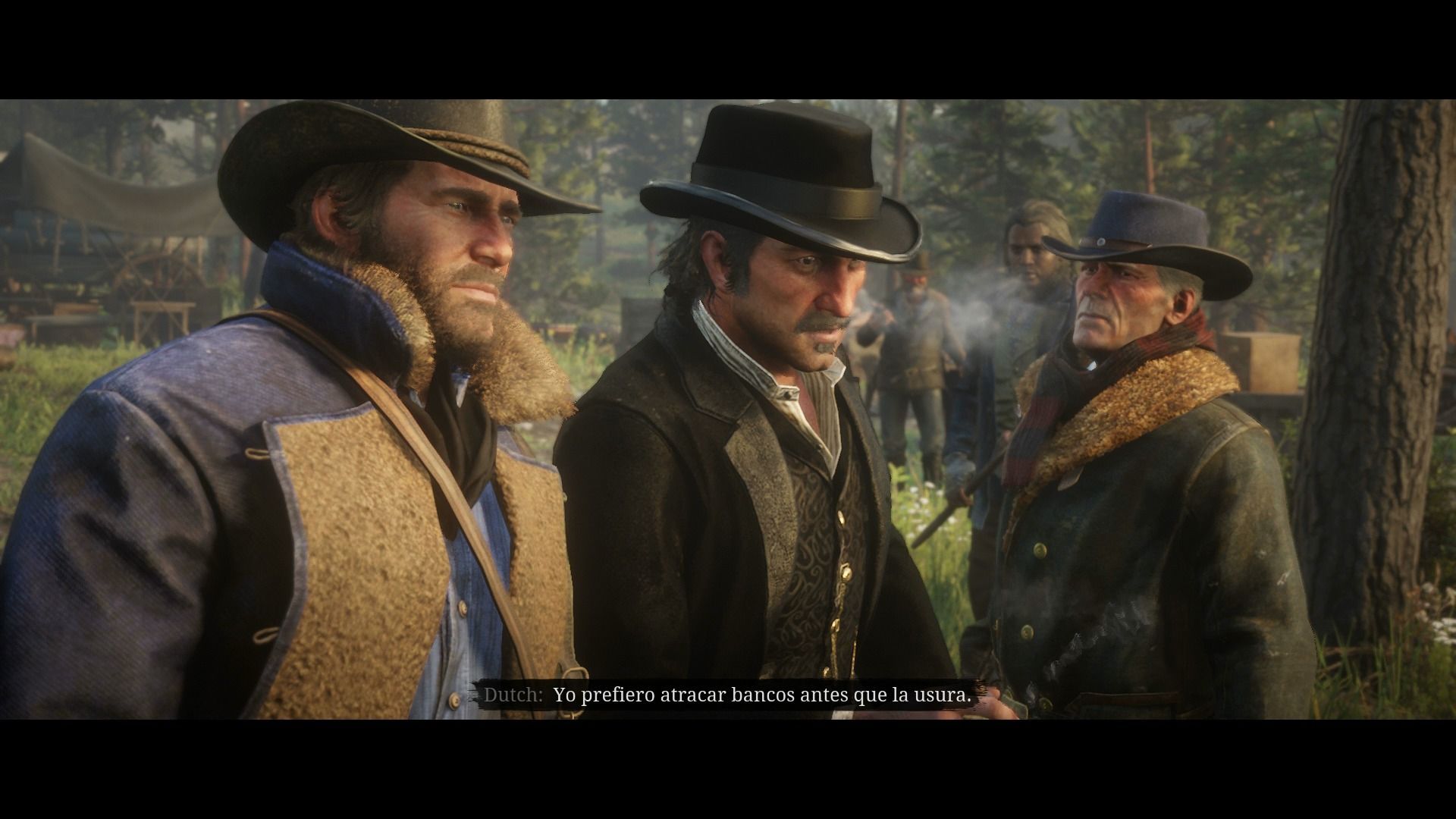 Temas recurrentes del western como la lealtad, el honor o la libertad están siempre muy presentes, así como el imparable progreso y todas sus consecuencias, que les pasa como un camión por encima a los protagonistas, que saben que sus días de forajidos están contados. Y por supuesto también se habla de redención, en un arco argumental que deja un excelente sabor de boca, muy emocionante. Está tan bien escrito que acabas cogiendo mucho cariño -y odiando- a los miembros de la banda, con los que siempre te apetece interactuar y conocer más en profundidad, con conversaciones que surgen de manera sorprendentemente natural, algo que nunca habíamos visto tan bien hecho en un juego de este estilo.