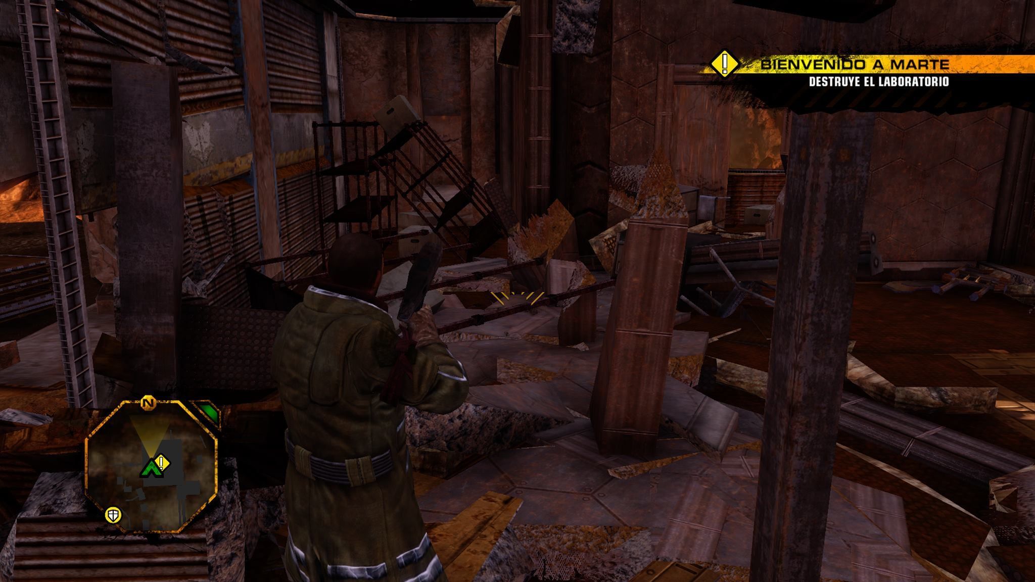 El objetivo en Re-Mars-tered es por tanto el mismo del original. Básicamente hay que tomar control de sectores ocupados mediante misiones principales o secundarias que consisten en destruir edificios estratégicos o defender a nuestros compañeros de ataques de la EDF. Y para estas tareas tenemos las habituales armas de fuego, o explosivos, pero en Red Faction hay un elemento que destaca sobre los demás: nuestro martillo.