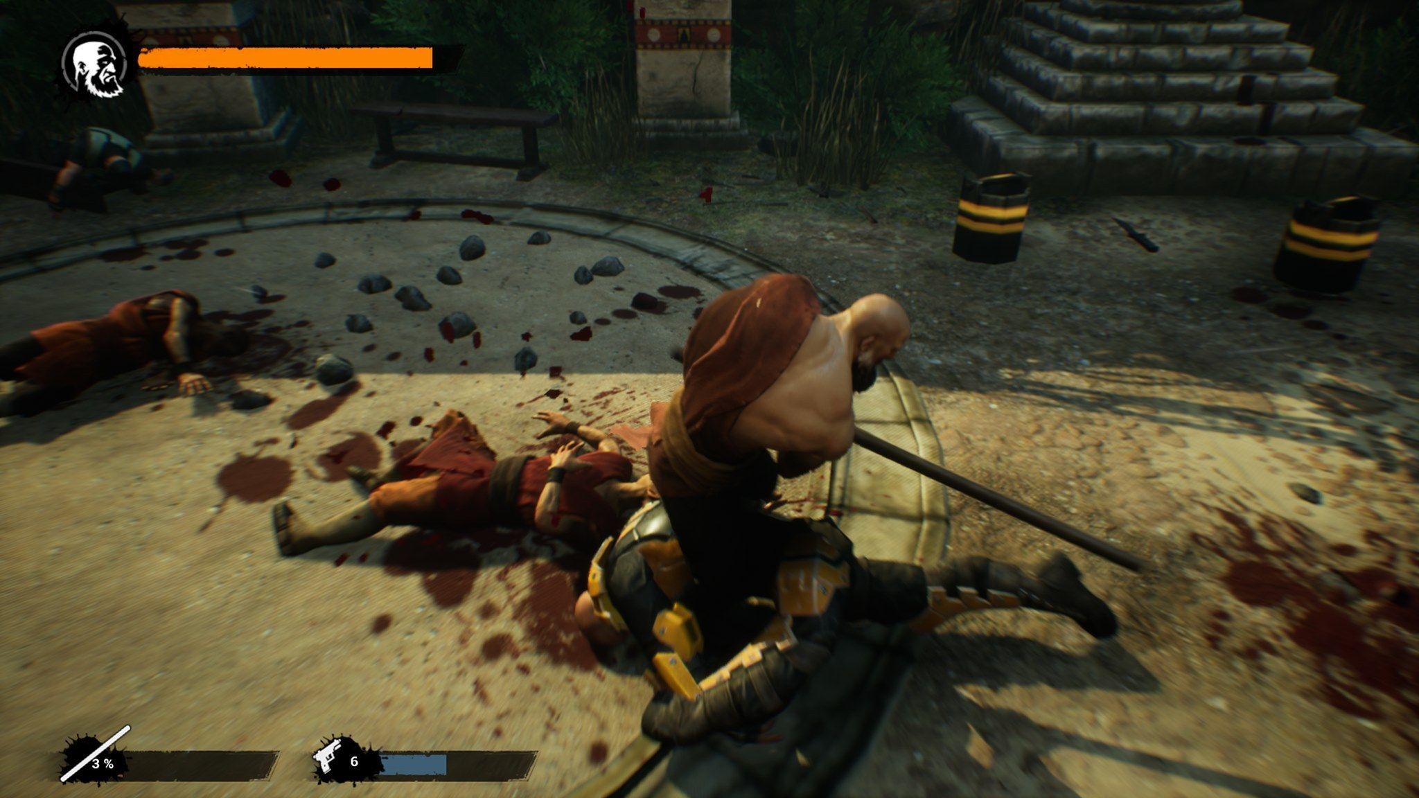 Otra de las peculiaridades del juego es que no es tanto un shooter puro, sino un beat´em up con variedad de opciones. Hay armas blancas como cuchillos, palos y demás, pero todos tienen una barra de resistencia que se agota muy rápidamente, de hecho apenas nos servirán para matar a un par de enemigos antes de desaparecer. Un corte con hacha es más dañino que las artes marciales, pero constantemente necesitarás ir cambiando entre armas o confiar en tu fuerza física. Igualmente, las pistolas, rifles o escopetas poseen una munición escasa, lo que obliga a robar armas a los enemigos todo el tiempo.