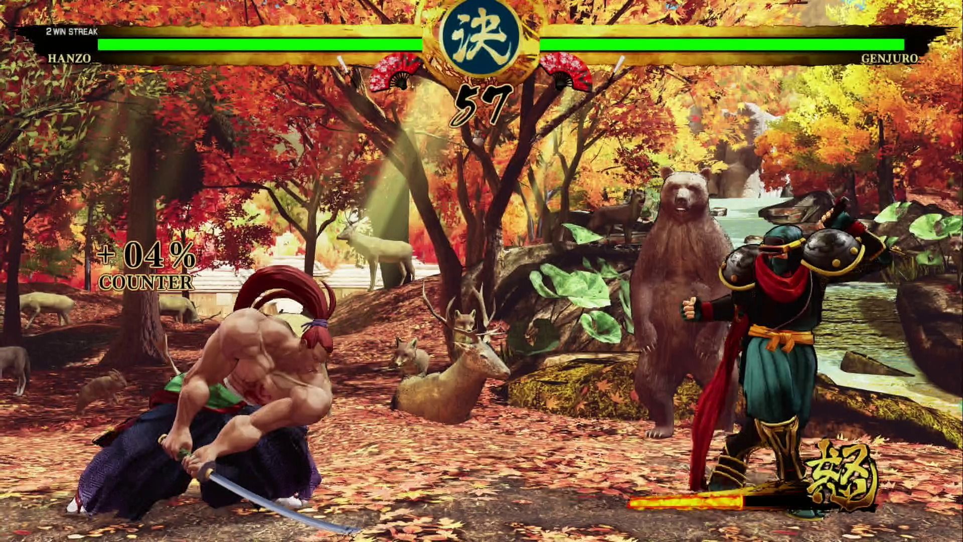 Si hay algo que no se puede negar de este juego es que entra por los ojos como ningún otro, y no precisamente por tener un apartado técnico puntero, sino por su espectacular diseño artístico y puesta en escena, apostando por un cel shading muy particular con trazos gruesos y múltiples efectos de tinta que transmiten constantemente la sensación de estar viendo una pintura tradicional japonesa, algo a lo que tenemos que sumarle un diseño y modelado de personajes genial, unas animaciones cuidadísimas, un uso de los colores acertadísimo y unas fondos preciosos, muy variados y llenos de vida. Puede que suene exagerado, pero os aseguramos que se trata de uno de los juegos de lucha más bonitos que hemos jugado nunca.