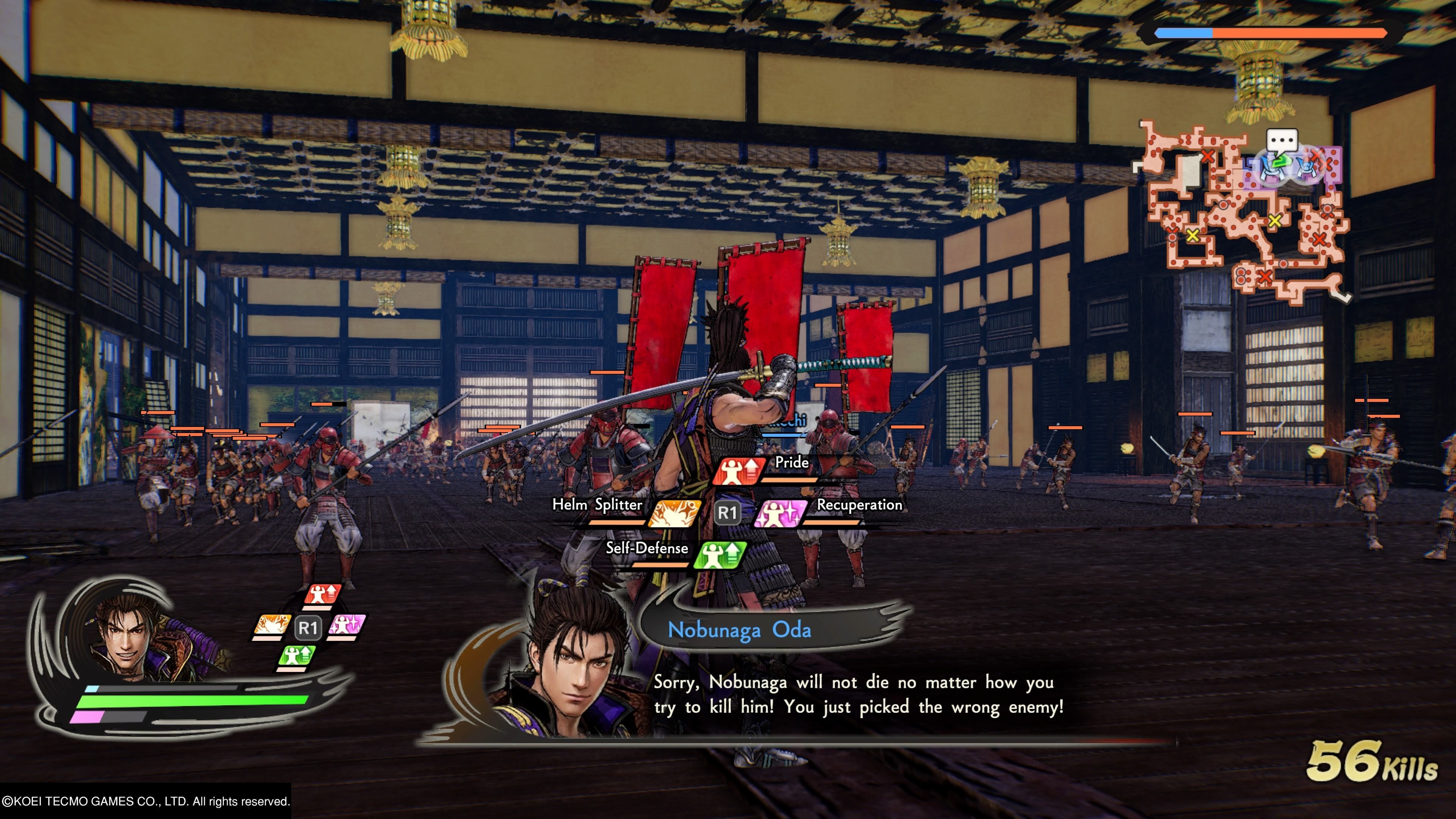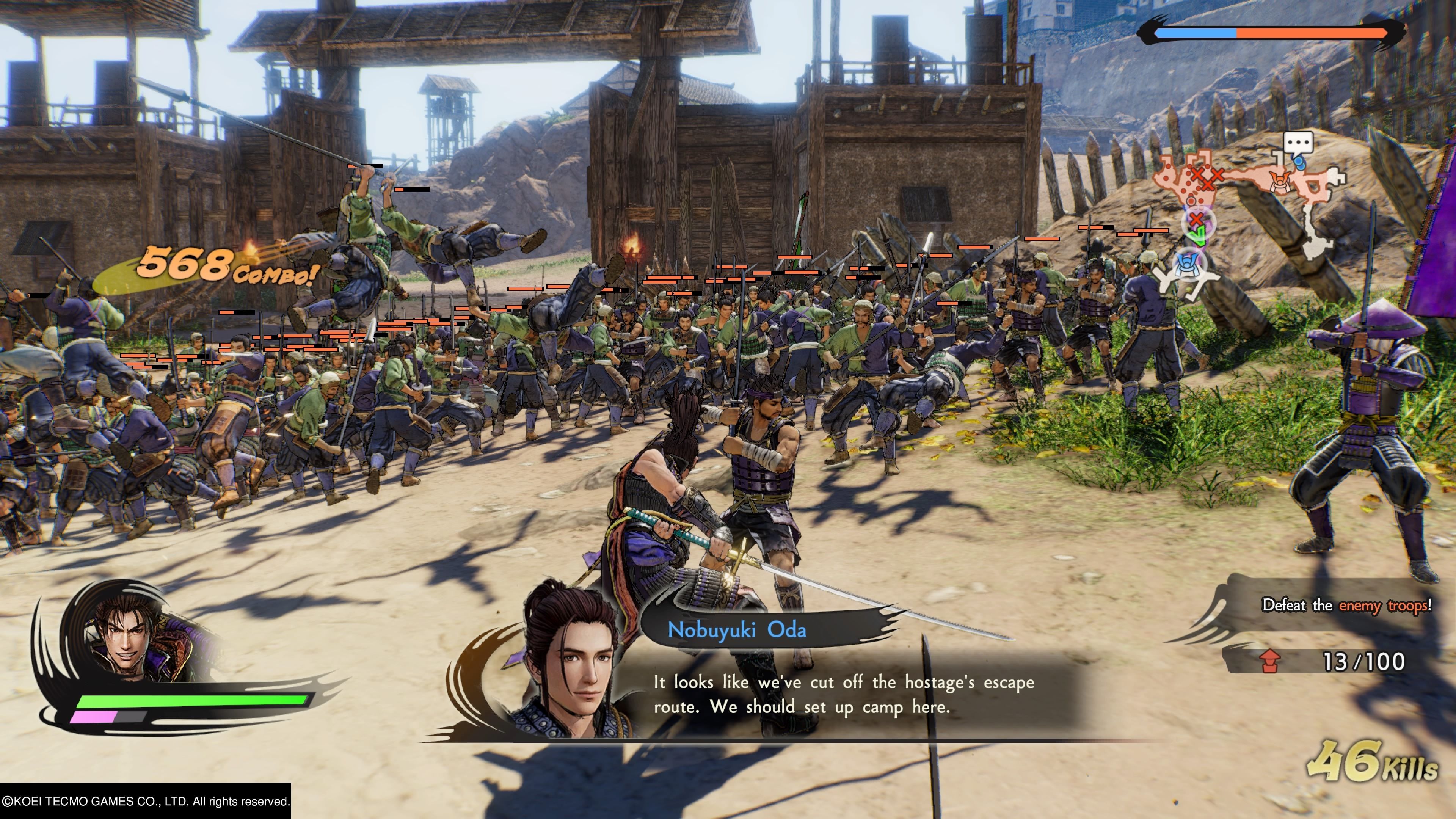 La base es la esperada: se trata de un hack’n slash donde eliminamos la mayoría de enemigos con facilidad, un golpe de espada y saltará por los aires medio ejército. Los oponentes son numerosos pero a cambio son poco agresivos, de manera que no tendremos muchos problemas para avanzar hacia el lugar que nos marca un objetivo dinámico que va cambiando según el avance. Los mapas de fortalezas y campos no son abiertos, sino una serie de pasillos y bases interconectadas con portones que se van abriendo según cumplimos condiciones. A Omega Force le ha funcionado mejor esta fórmula que cuando intentó un auténtico mundo abierto de conquistas –Dynasty Warriors 9-, así que no es ninguna sorpresa que se dejen a un lado los experimentos.