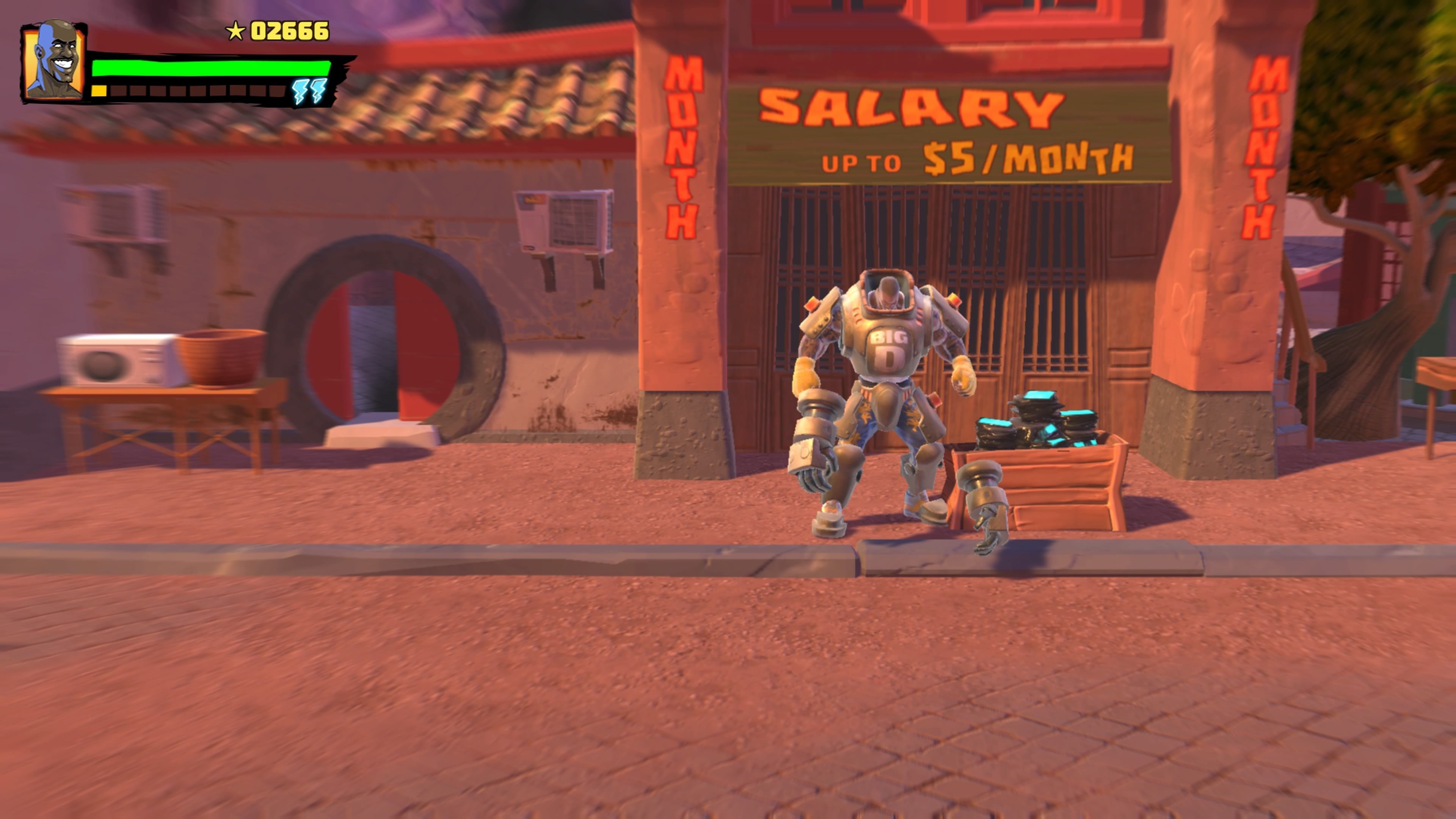 Sin embargo y a pesar de sus carencias, no se trata del mayor inconveniente que presenta este beat 'em up. Y eso que el sistema de control no está mal diseñado, usándose la mayoría de los botones frontales y superiores del mando para ejecutar golpes básicos, cadenas de combos y ataques especiales, incluyendo varios en los que pateamos a los rivales con una versión caricaturizada del gigantesco pie del protagonista.