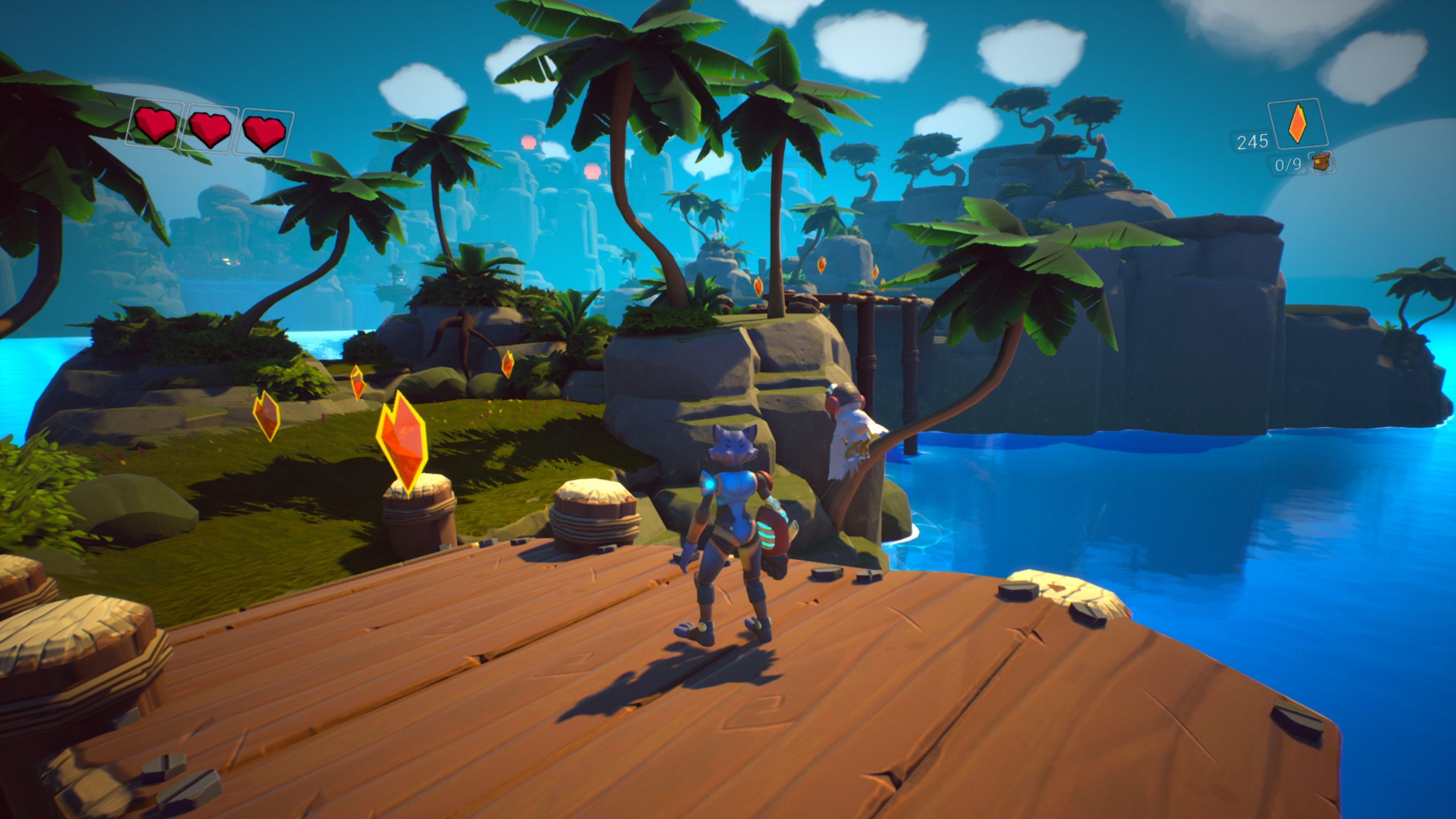 La aventura se desarrolla en una bonita isla dividida en diferentes zonas, y los escenarios están plagados de una serie de cristales que tenemos que recoger para abrir unas jaulas y rescatar a unas simpáticas criaturas. Aquí encontramos una de las decisiones de diseño más extrañas del juego, ya que estos cristales también se consiguen derrotando enemigos o rompiendo unas cajas de madera, y estas se regeneran cada vez que volvemos a una zona ya visitada, por lo que patearse los escenarios recogiendo todos los cristales no tiene sentido ni utilidad real, es un recurso que siempre abunda.