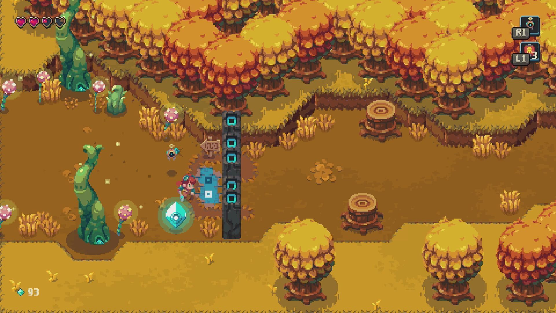 Como se puede comprobar por las imágenes, Sparklite es un juego de acción con vista superior muy en la línea de los clásicos ARPG y aventuras de la década de los 90. Los enemigos son sencillos monstruos con algún patrón de ataque, embestidas o lanzamiento de proyectiles. Ada, en principio, tiene un golpe rápido y a corta distancia con su llave inglesa, además de un movimiento de carrera que también sirve para sortear pequeños barrancos. No es un sistema de combate extremadamente profundo o frenético, sino que se inspira en la saga de Nintendo, de ritmo algo más pausado.