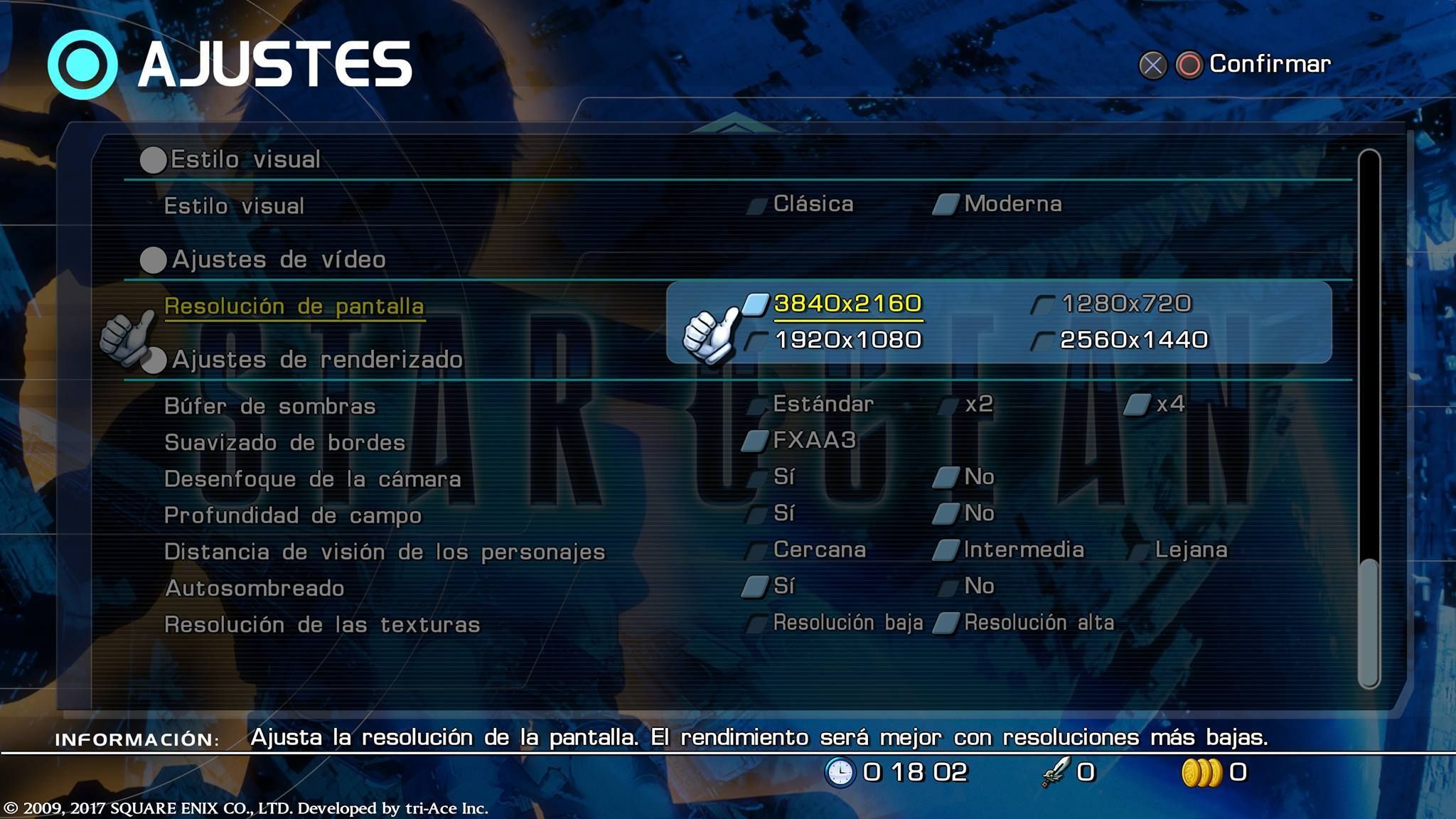 Un aspecto interesante y no demasiado habitual en las remasterizaciones de consola son la múltiples opciones gráficas que encontramos en Star Ocean. Además de elegir entre una visualización clásica o moderna –que afectan a la interfaz-, los usuarios de PS4 Pro podrán elegir entre varios ajustes de resolución disponibles. Por ejemplo un jugador con pantalla 1080p podrá elegir resoluciones superiores para forzar downsampling -eliminación completa de dientes de sierra mediante reescalado-, como 2560x1440 y 3840x2160.