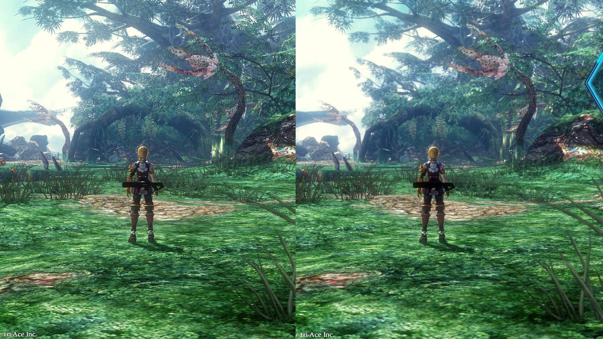 ¿Cuál es la razón para incluir esto en el menú? ¿Por qué no activar todas las mejoras al máximo? Aquí está la otra cara de la moneda. Tri-Ace deja al jugador elegir entre un buen rendimiento sacrificando la calidad o una mayor fidelidad gráfica, aunque esto último cause una pérdida en la fluidez con ralentizaciones o una tasa media menor en el framerate. Al menos se pueden cambiar nuestras preferencias en todo momento según la carga del mundo que visitamos o la exploración en entornos cerrados/abiertos, así que no es mala idea experimentar diversas combinaciones.