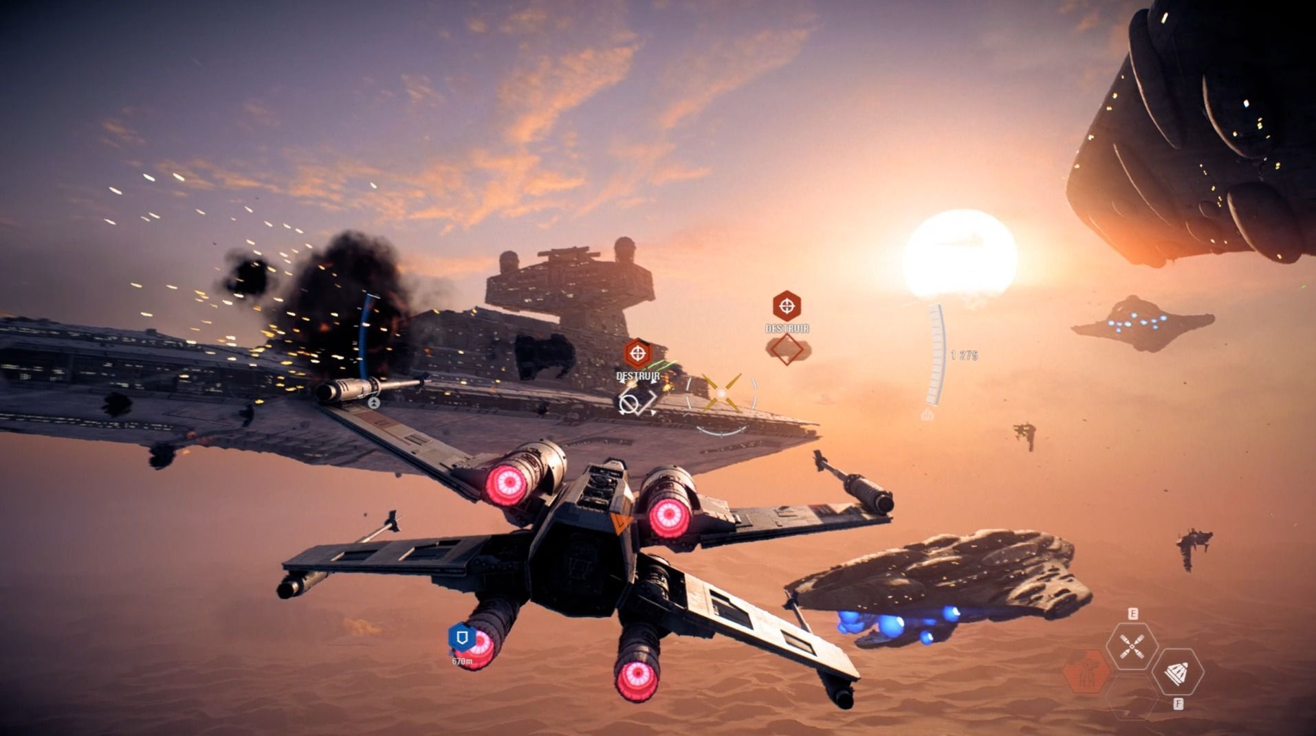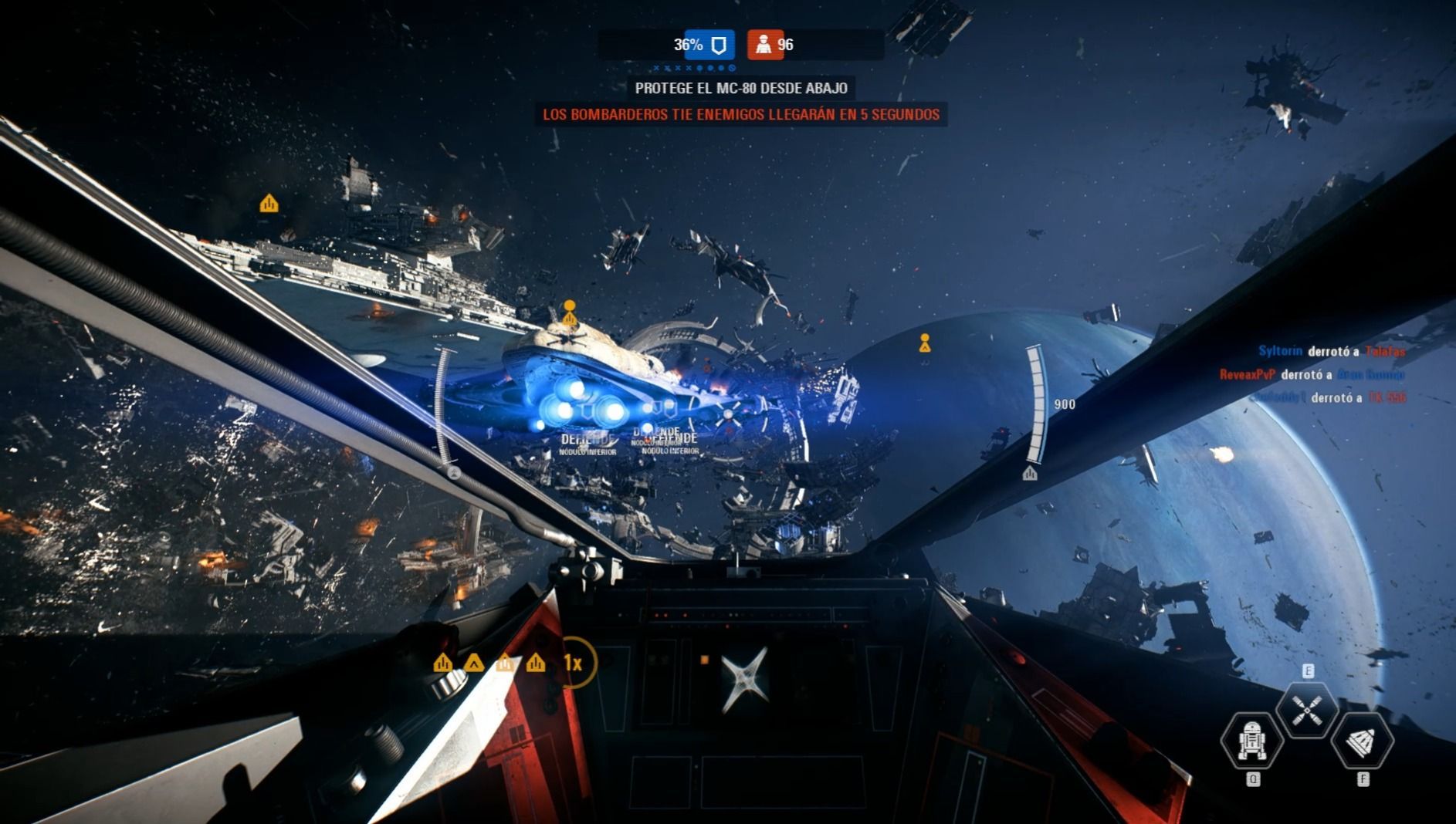 Otra opción muy llamativa es Asalto de Cazas Estelares, un modo en el que 24 jugadores divididos en dos equipos se enfrentarán en alucinantes batallas espaciales por objetivos. Esta vertiente es pura adrenalina y nos hará disfrutar de enfrentamientos espaciales llenos de emoción, muy parecidos a los que desde hace décadas hemos visto en las películas de Star Wars.