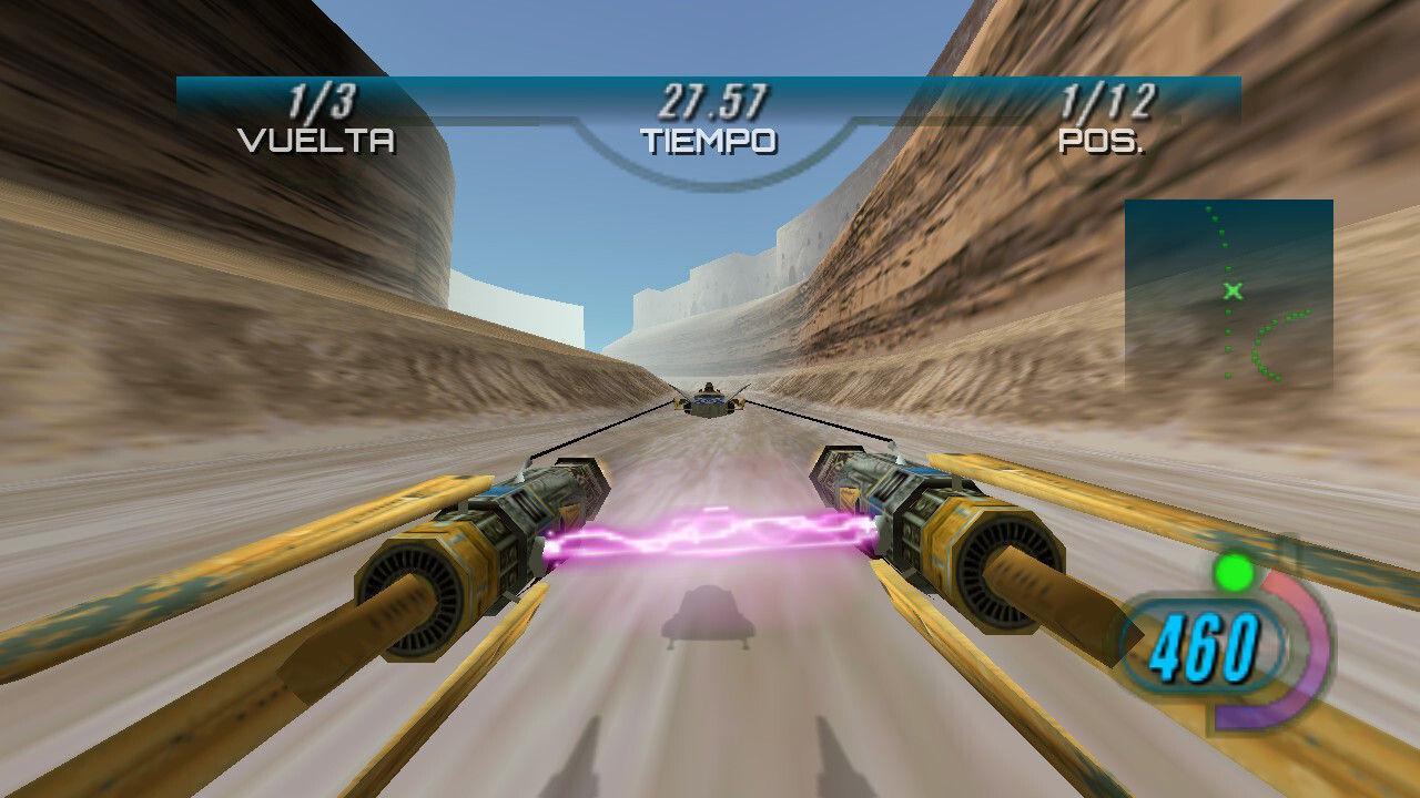 Star Wars Episode I: Racer es la muestra perfecta de lo que podría llegar a dar de sí un videojuego con licencia de una saga con mucho tirón. Hablamos de un título de conducción arcade, muy simple y directo, que intentaba emular algunas de las mecánicas y elementos vistos en sagas consolidadas y muy importantes por aquel entonces, como F-Zero de Nintendo o los clásicos WipEout de la ya extinta Psygnosis. Recogiendo el guante de lo que funcionaba en el género, y fundiéndolo con la mitología de Star Wars, LucasArts cuajó con inteligencia un título que expandía la famosa y citada carrera de vainas de La amenaza fantasma, presentándonos un videojuego rápido, muy lustroso a nivel técnico para la época y con una variedad de circuitos y conductores notable. Quizás ahora, dos décadas después, no parezca mucho, pero en su momento, había muy pocos juegos tan impactantes en cuanto a gráficos en el género o en el catálogo de máquinas como la 64 bit de Nintendo.