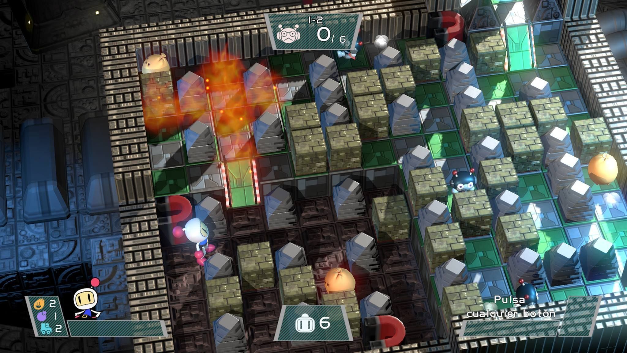 Visualmente no tiene cambios visibles respecto al original más que la subida en resolución y unos 60fps estables. Por el estilo artístico de Bomberman no se le pueden poner muchas pegas salvo unas zonas desangeladas fuera de las arenas de combate –a las que de todas formas no prestarás ninguna atención durante la partida-.