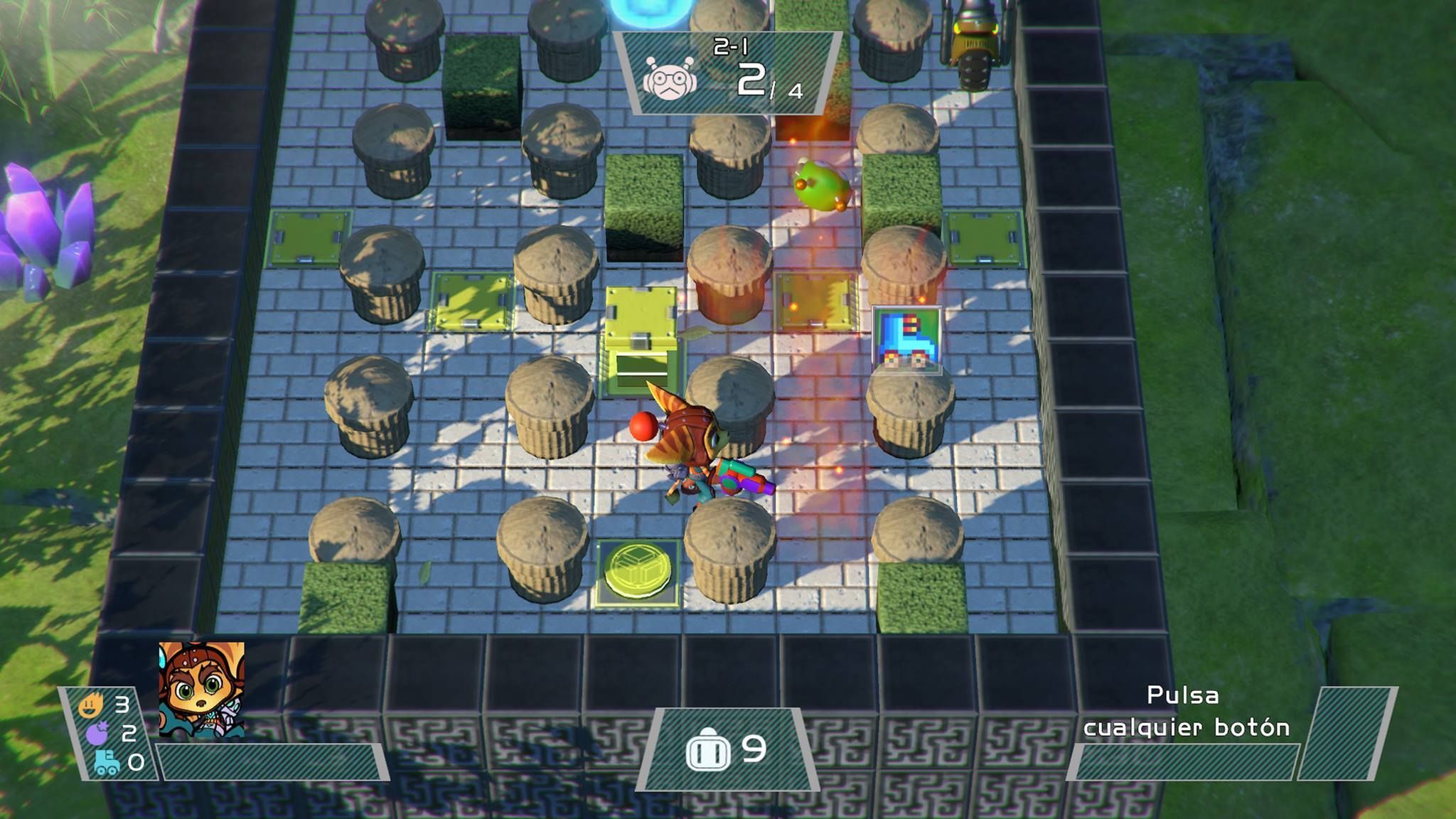 Esta historia que nos puede durar unas pocas horas cuenta con niveles de dificultad y la posibilidad de jugar en cooperativo –que es lo más interesante-, pero al final se convierte en una mera disculpa para conseguir monedas con las que desbloquear nuevos diseños de Bomberman –incluyendo cameos de otras sagas, y cada uno con su habilidad especial-, mapas –más de 20 arenas extra- o accesorios.