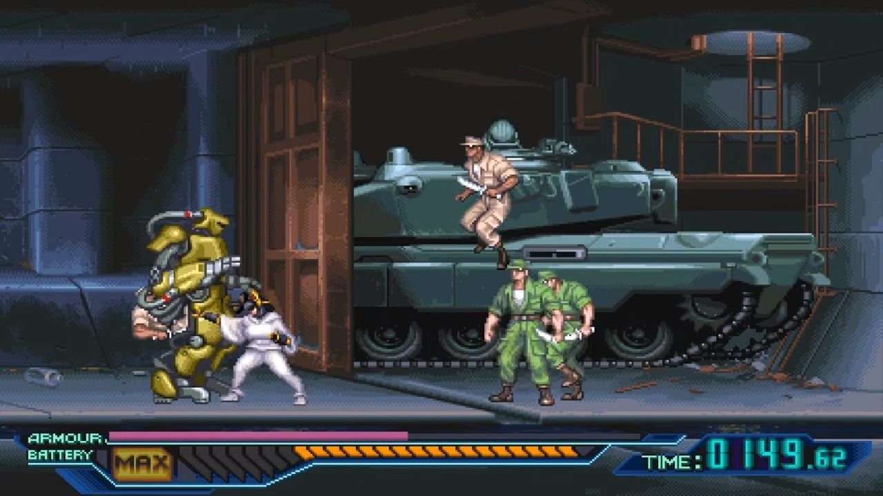 El esquema de juego es totalmente invariable y debemos avanzar de izquierda a derecha de cada fase mediante un scroll lateral por niveles totalmente lineales que están repletos de rivales. Además, en este caso la jugabilidad es tan rígida que incluso limita el desplazamiento de los personajes a un solo plano, siendo imposible ir más allá de derecha-izquierda y recorrer los escenarios con algo más de libertad (de arriba abajo) como sí que sucede en clásicos como Final Fight o Streets of Rage, por citar sólo dos ejemplos. Pero este hecho no nos parece algo que sea penalizable o criticable. Simplemente es una decisión de diseño más y no afecta negativamente a la jugabilidad, al menos desde nuestro punto de vista.