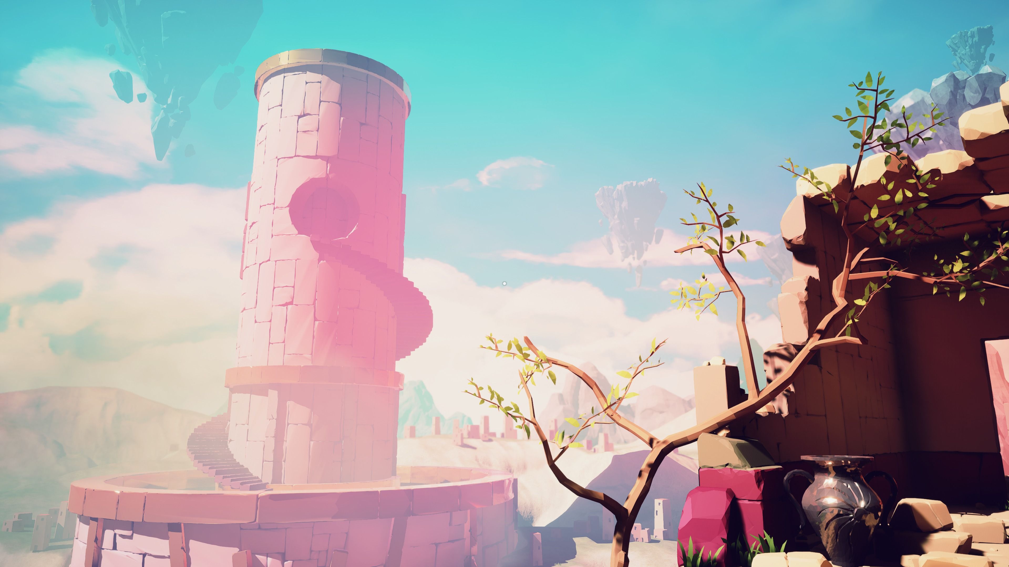 Lo primero que llama la atención en The Sojourn es lo bonito que es, a pesar de ser tecnológicamente muy discreto. Es un buen ejemplo de lo que hoy en día un título indie puede conseguir con una cuidada dirección de arte, con unos coloridos escenarios que transmiten paz y calma, y que consiguen que sea hasta relajante. Esto va más allá de ser un capricho estético, y su ambientación es tan agradable que mitiga la frustración que puede llegar en algunos puzles, aunque ya os advertimos que no es especialmente difícil, aunque sí desafiante.